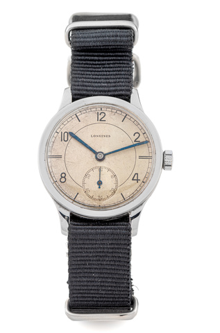 A fine, thick, rare, self-winding, stainless steel diver’s wristwatch with military casebackGrading System: AAA