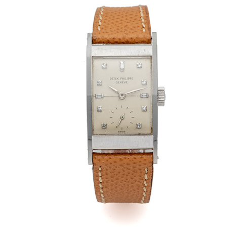 PATEK PHILIPPE, BEVELLED BEZEL, SO-CALLED “TEGOLINO”; PLATINUM