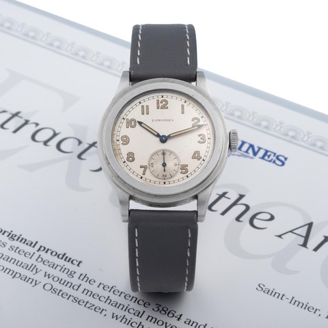 LONGINES, SWITZERLAND, "PILOT", ENAMEL DIAL, CHROME