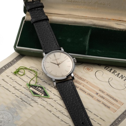 IWC, SWITZERLAND, NEW OLD STOCK, CALIBER 89, ORIGINAL BOX, CERTIFICATE AND HANG TAG, STAINLESS STEEL