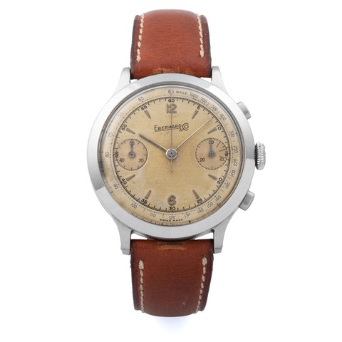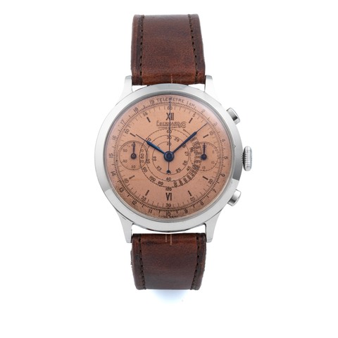 EBERHARD & CO., SWITZERLAND, PRE EXTRA FORT, SINGLE BUTTON CHRONOGRAPH, SALMON DIAL, STAINLESS STEEL