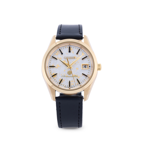 A very fine and rare, titanium quartz wristwatch with tosa washi dial adorned with metallic gold foil, centre seconds and date. limited edition of 500 pieces for the 25th anniversary of the chronomaster line.