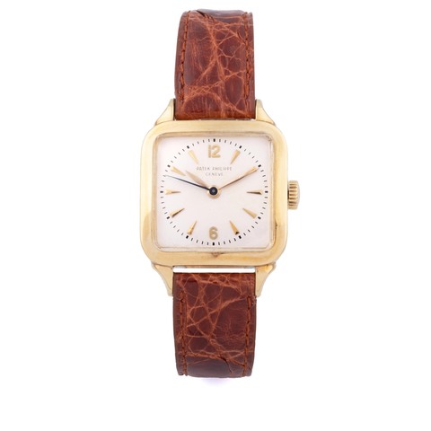 A very fine and rare, 18k yellow gold, manual wind wristwatch, silver dial, gold index and hands