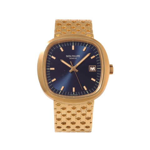 PATEK PHILIPPE, SWITZERLAND, REF. 3919J-015, CALATRAVA BLUE DIAL YELLOW GOLD