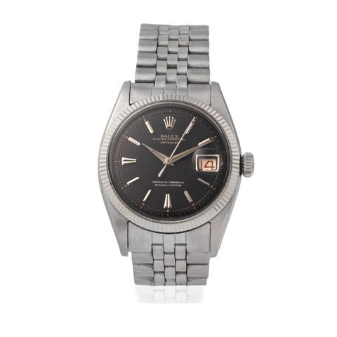 ROLEX, SWITZERLAND, REF. 6605, DATEJUST, WITH CHARMING BLACK HONEYCOMB DIAL, STAINLESS STEEL