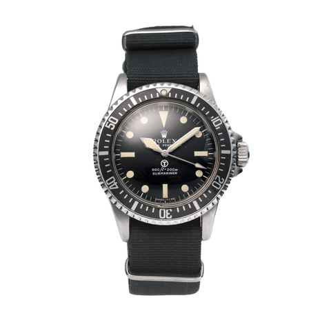 A fine and very rare stainless steel manual winding chronograph wristwatch, featuring a black “sigma” oyster dial with silver subsidiary registers, millerighe screw-down pushers, mark 1 black acrylic bezel, and fitted with a stainless steel jubilee bracelet