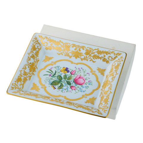 A fine and rare porcelain Vide-Poche with flower bouquet decoration inspired by a Patek Philippe enameled pocket watch made in 1843.Grading System: AA