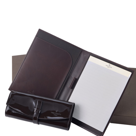PATEK PHILIPPE, A SET OF TWO VIP GIFTS, JEWELRY POUCH AND A FINE LEATHER NOTEPAD WITH MEMO BOOK