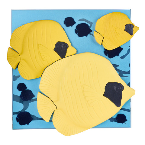 An extremely rare and charming window display backdrop from rolex, figuring 3 huge butterfly fishes with school of smaller butterfly fishes in the background.Grading System: AA