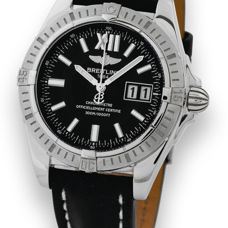 C. Three-body, polished and brushed, unidirectional rotating graduated bezel with screw markers and quarter rider tabs, screwed-down case back and crown, concave lugs, sapphire crystal. D. Black with applied Roman XII and luminous steel baton indexes, outer minute/seconds track, double aperture for the date. Luminous steel baton hands. M. Cal. 49, rhodiumplated, fausses cotes decoration, 21 jewels, straight-line lever escapement, monometallic balance, shock absorber, selfcompensating flat balance spring, micrometer regulator. Dial, case and movement signed. Diam. 41 mm. Thickness 14 mm.