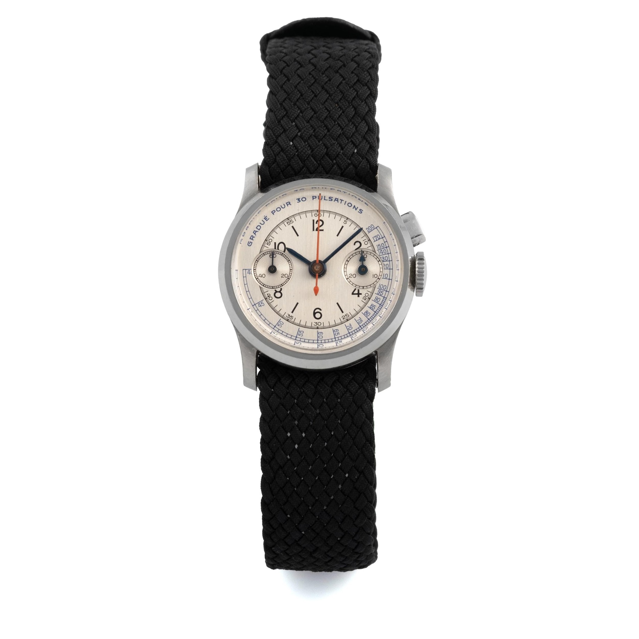 ANONYMOUS, SWITZERLAND, "BABY CHRONOGRAPH", PULSATION SCALE, STAINLESS STEEL