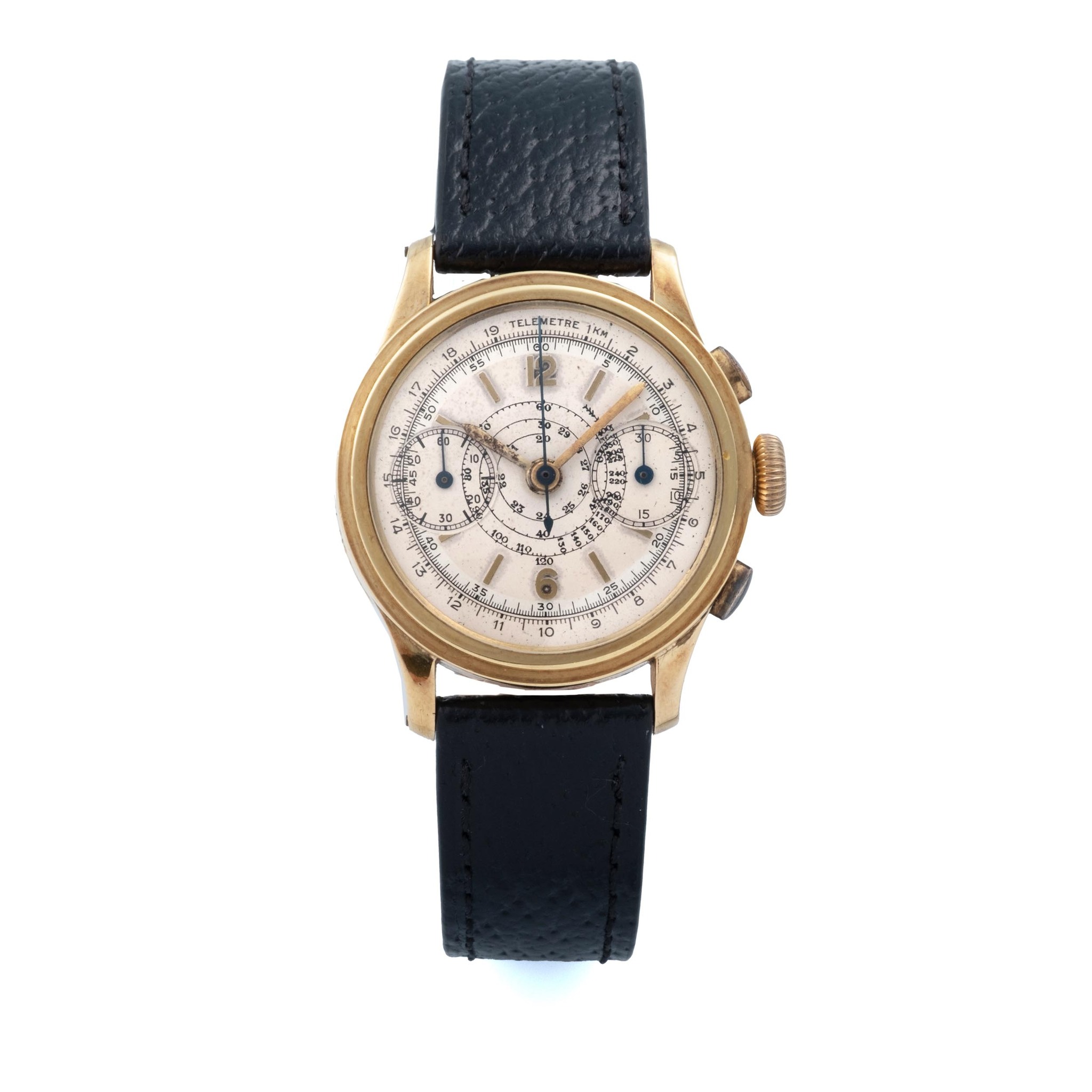 A fine, attractive, 18k yellow gold, manual wind chronograph wristwatch