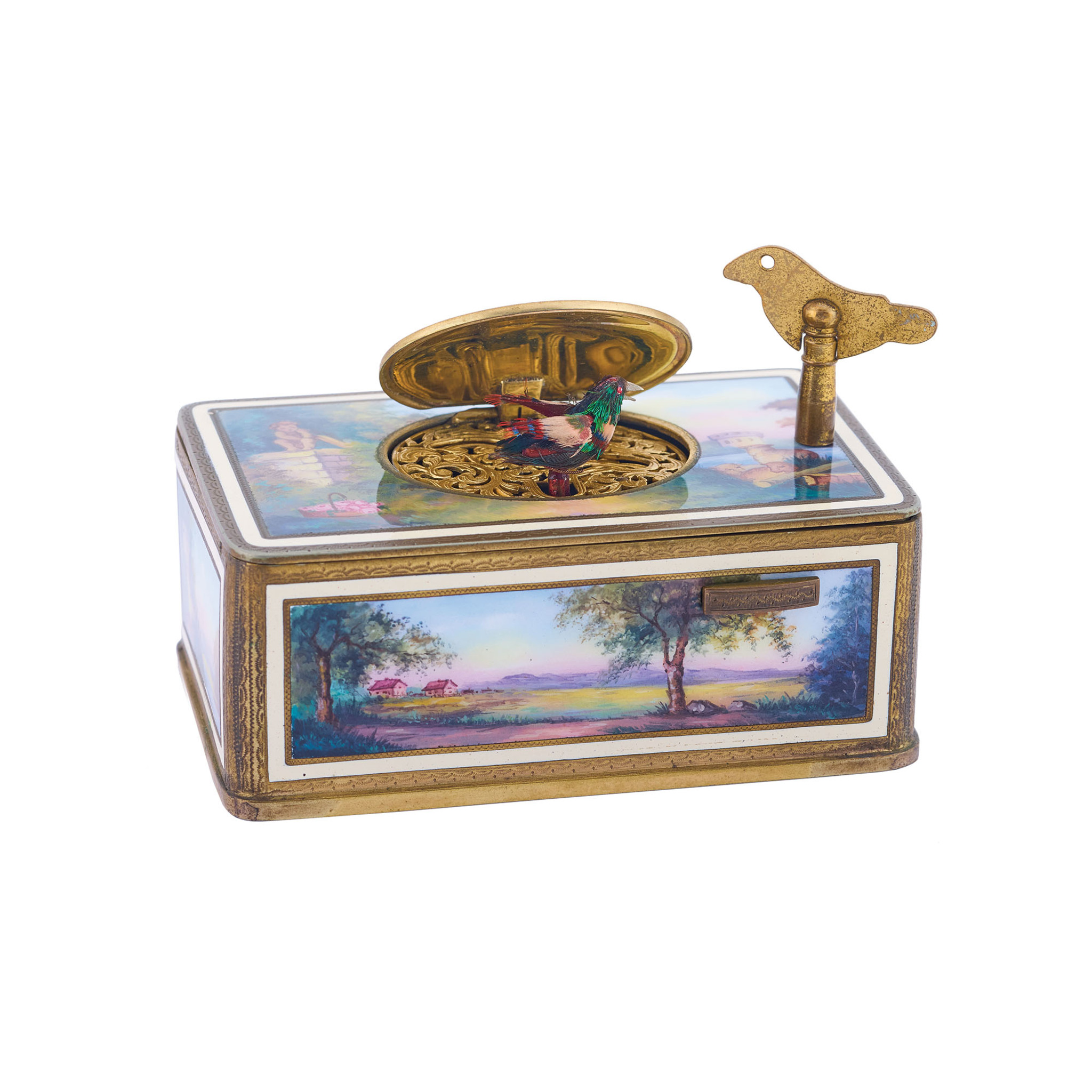 ATTRIBUTED TO GRIESBAUM, SINGING BIRD BOX, GERMANY, GILT METAL AND ENAMEL