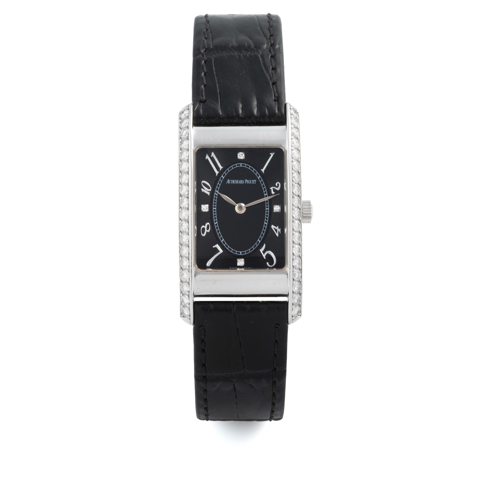 AUDEMARS PIGUET, SWITZERLAND, EDWARD PIGUET, BLACK DIAMOND INDEX AND BEZEL, 18K WHITE GOLD