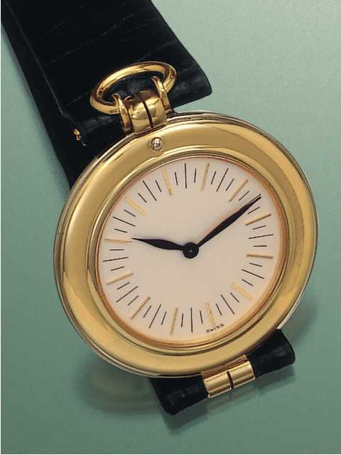 C. three-body, solid, polished, back with screws, revolving wide bezel with pendant on the 12 and marked by a white gold dot, white gold band, yellow gold case, ?Vendôme? type lugs. D. matte silver with applied yellow gold indexes. ?Feuille? blued steel hands. M. Cal. 9''' rhodium-plated, ?fausses côtes? decoration, 18 jewels, straight line lever escapement, monometallic balance, shock-absorber, self-compensating flat balance-spring.Dial, case and movement signed.Diam. 31 mm.