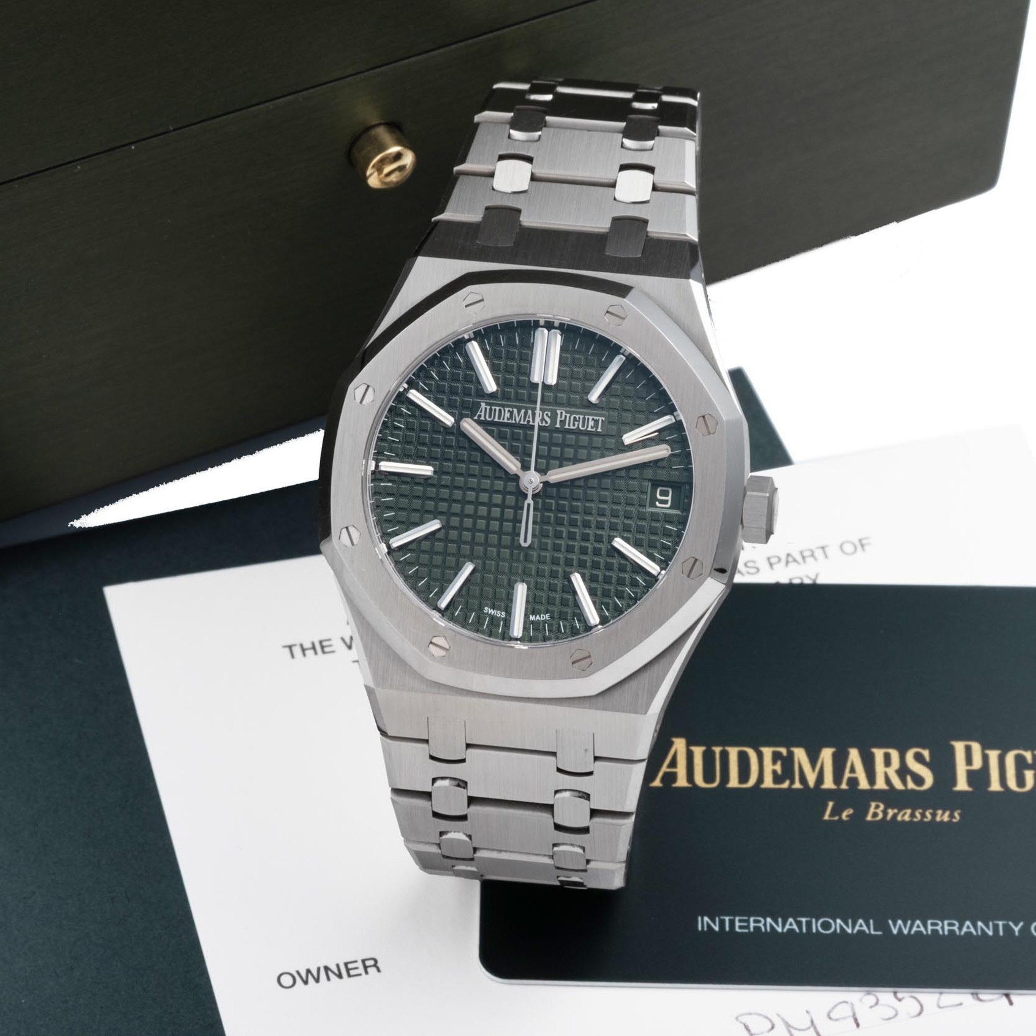 AUDEMARS PIGUET, SWITZERLAND, REF. 15510ST.OO.1320ST.04, ROYAL OAK 50TH ANNIVERSARY, GREEN DIAL, STAINLESS STEEL