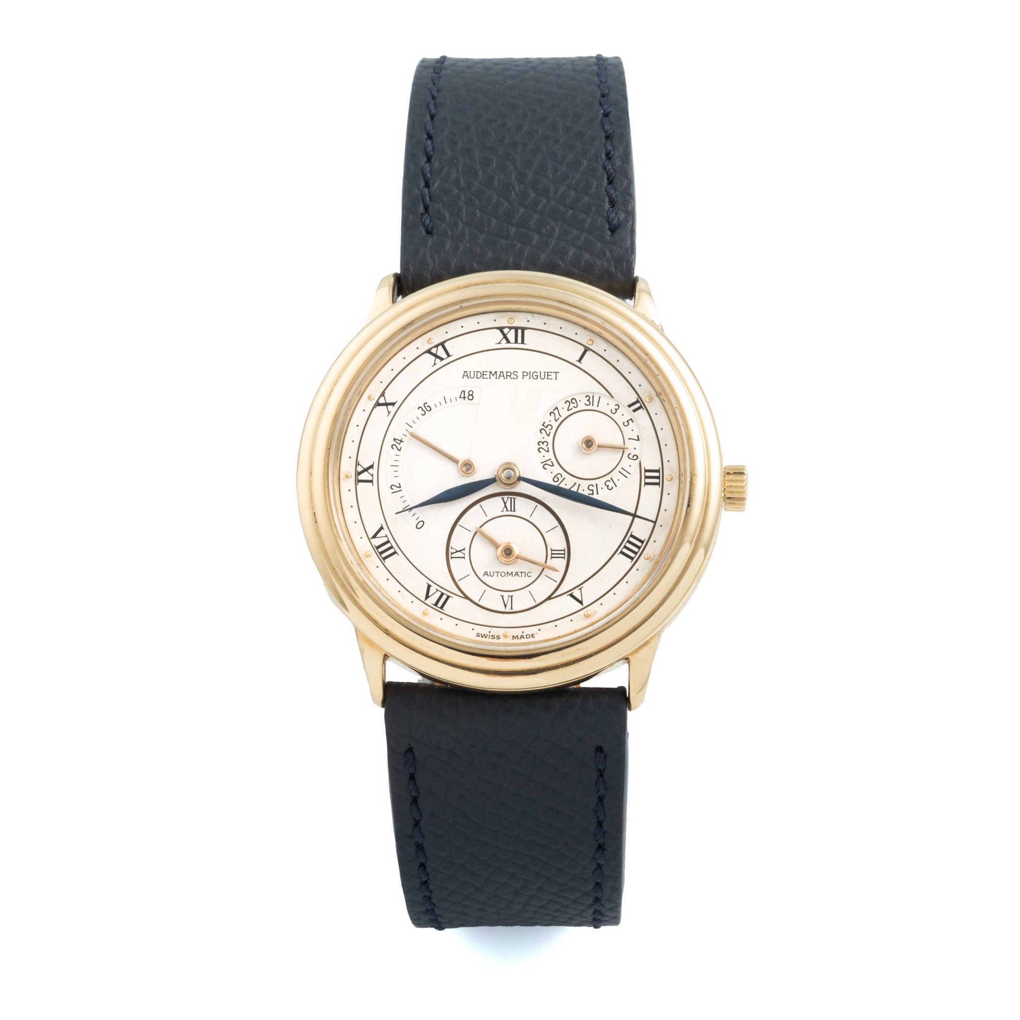 A fine, 18k yellow gold, self winding wristwatch with dual time, date and power reserve