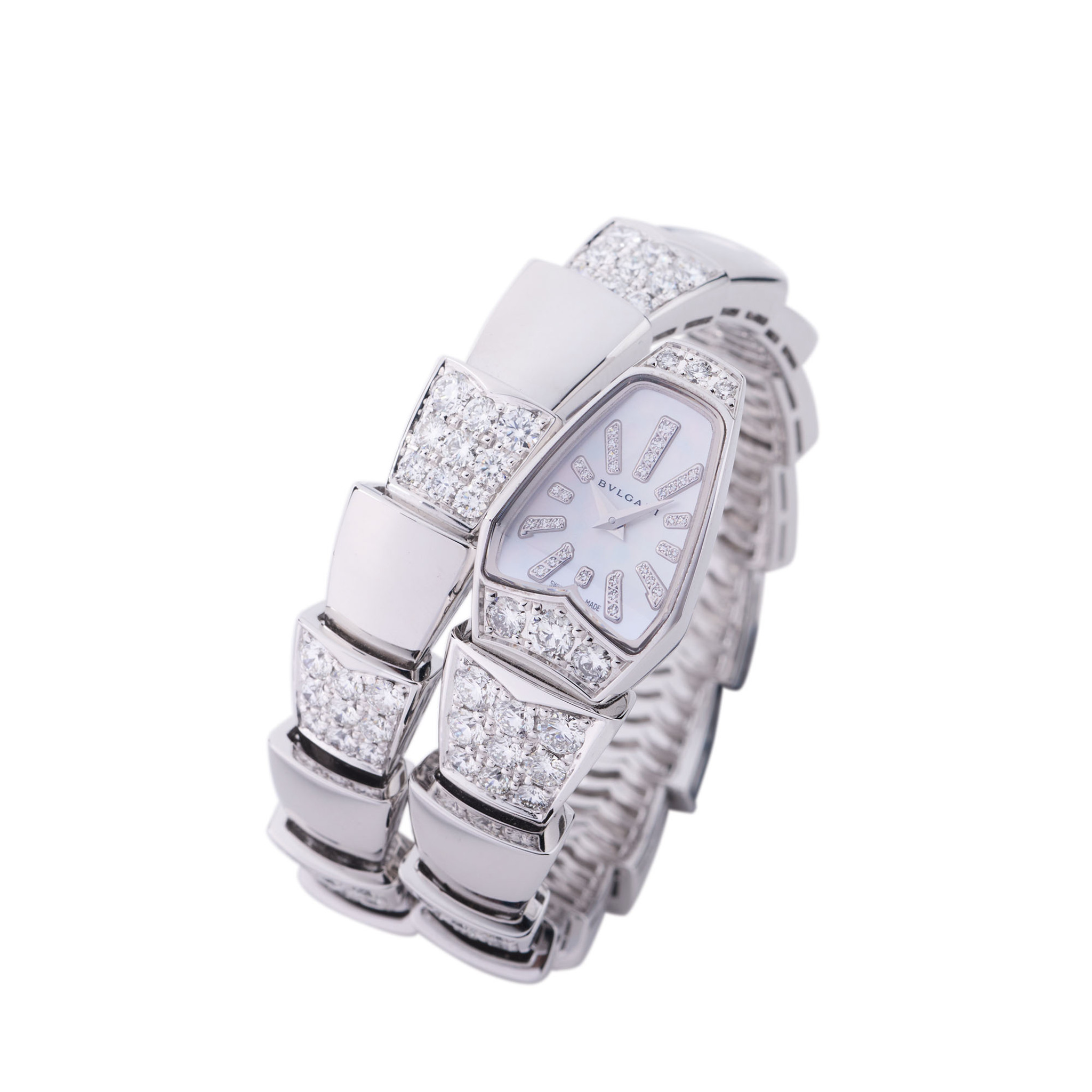 BVLGARI, REF. 101787, SERPENTI SCAGLIE, QUARTZ, MOP DIAL, 18K WHITE GOLD AND DIAMONDS