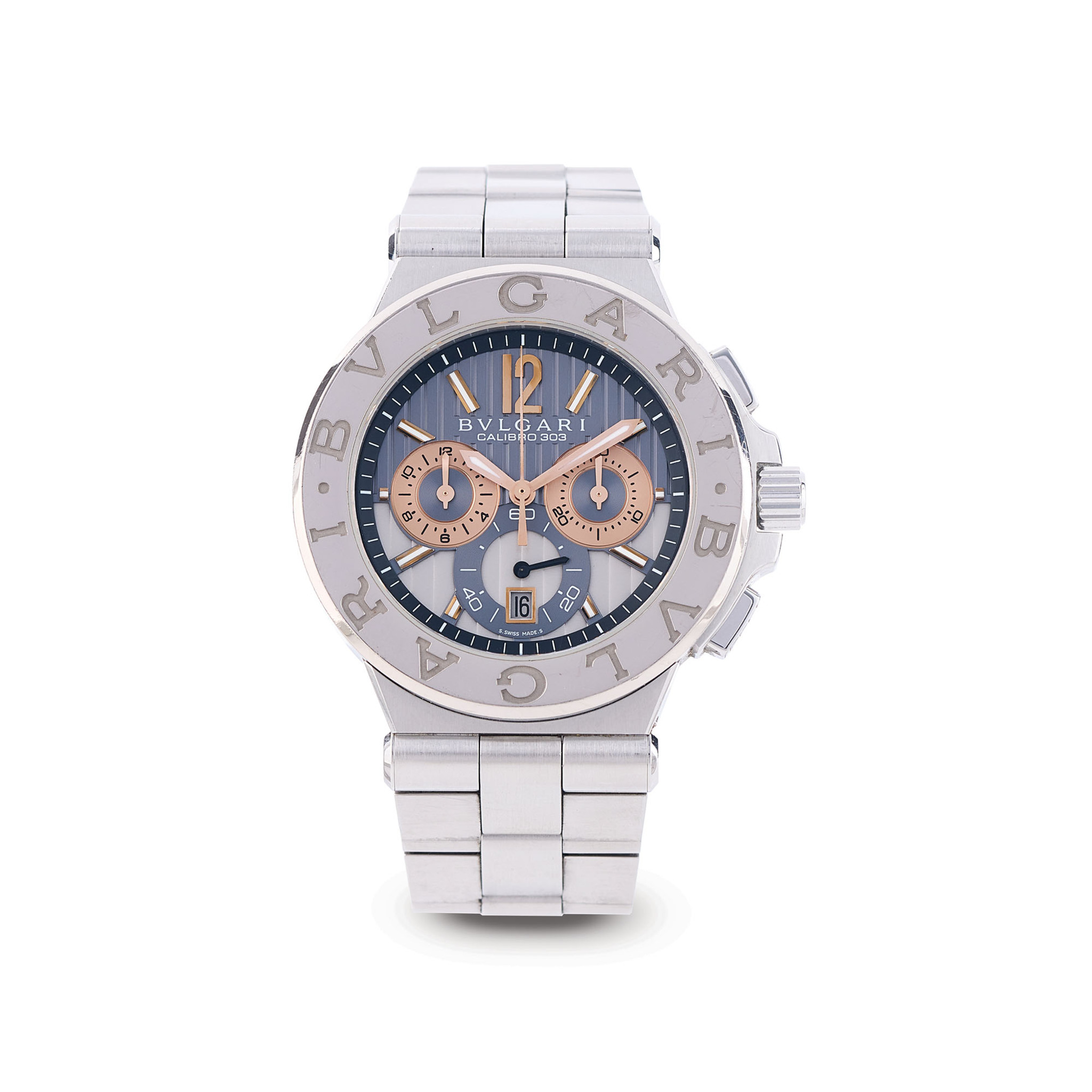 BVLGARI, REF. DG42C14SWGSDCH, DIAGONO CALIBRO 303, STAINLESS STEEL AND 18K WHITE GOLD