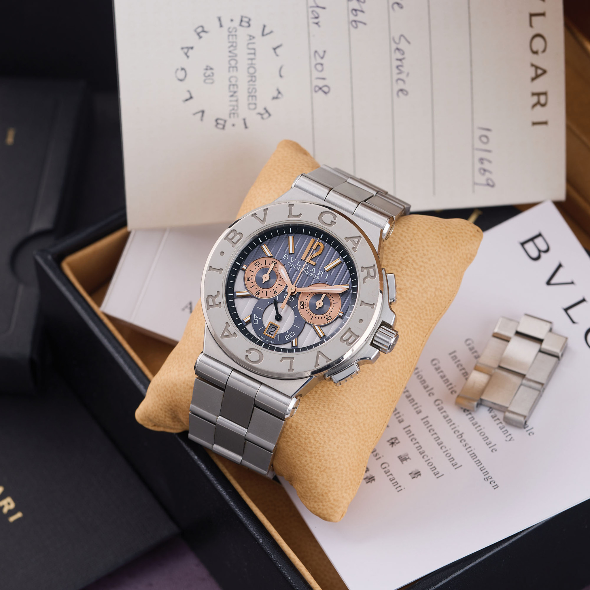Accessories Bvlgari fitted box, international warranty dated 2009, certificate of authenticity, instructions booklet, repair warranty dated 2018