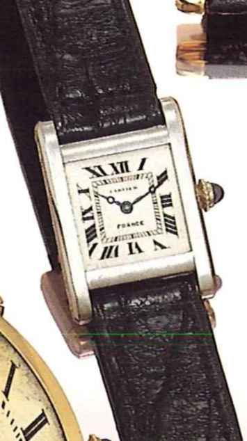 Cartier "Tank", Plate, No. 24693, case No. 20487, circa 1928. Very fine and rare, small, platinum Iady's wristwatch with 18 et pink gold Cartier deployant clasp.