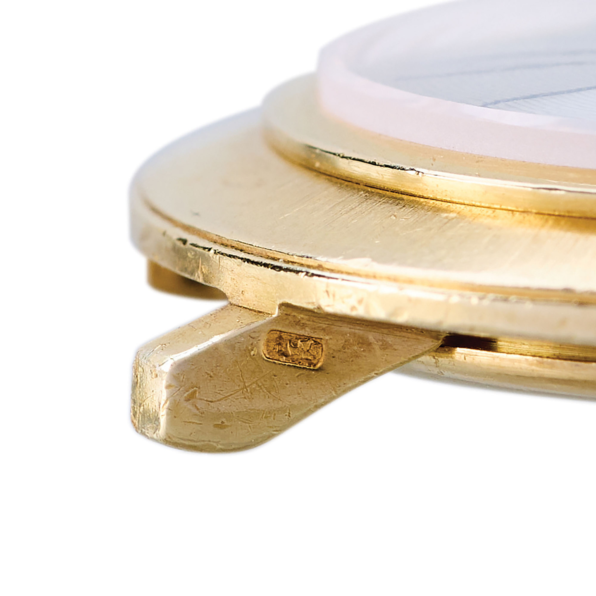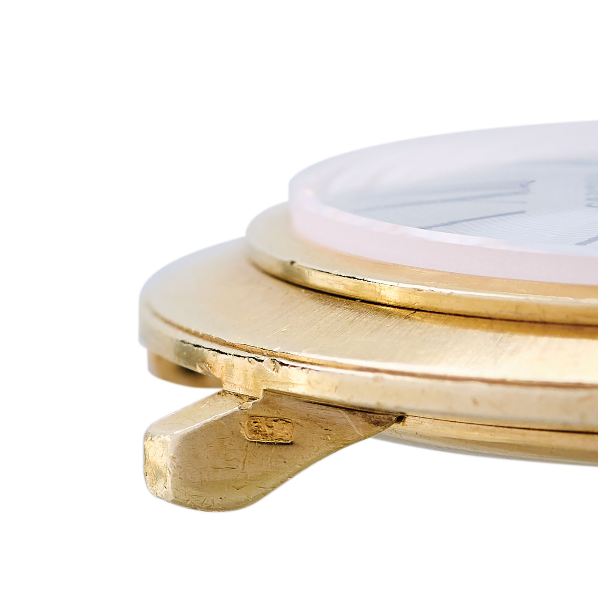 A fine and very rare, 18K yellow gold manual winding wristwatch with guilloche dial.