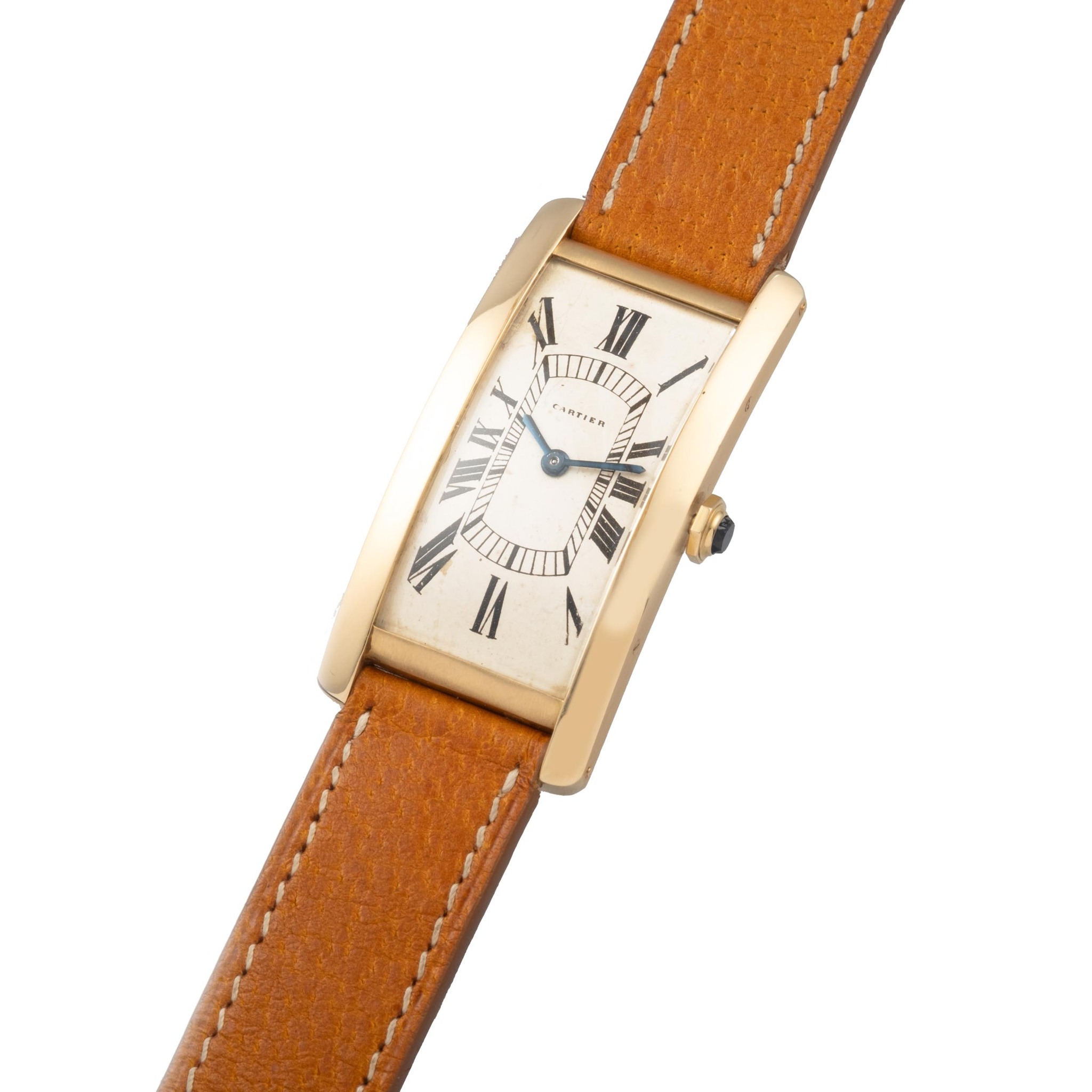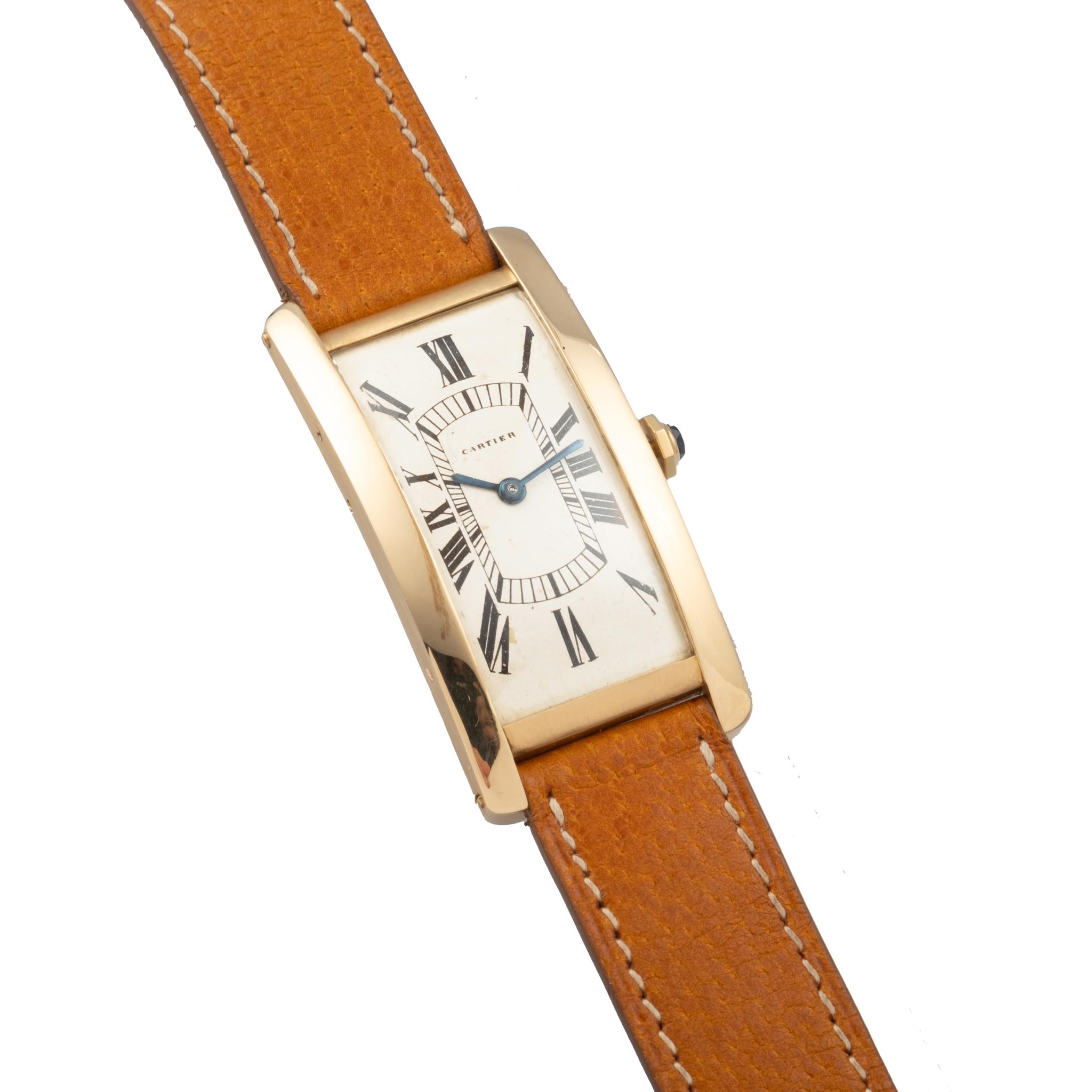 The present example, crafted in 18k yellow gold, reveals all the attributes that have made the Cintrée one of the most coveted dress watches in the history of fine horology. Its cream dial, adorned with elongated Roman numerals and framed by Cartier’s signature chemin-de-fer minute track, offers a harmonious balance between purity and sophistication. The blued steel hands add a touch of vibrant contrast, animating the dial with a discreet yet unmistakable flash of color. Beneath this elegant façade beats a manually-wound movement, faithful to Cartier’s tradition of slenderness and mechanical refinement.