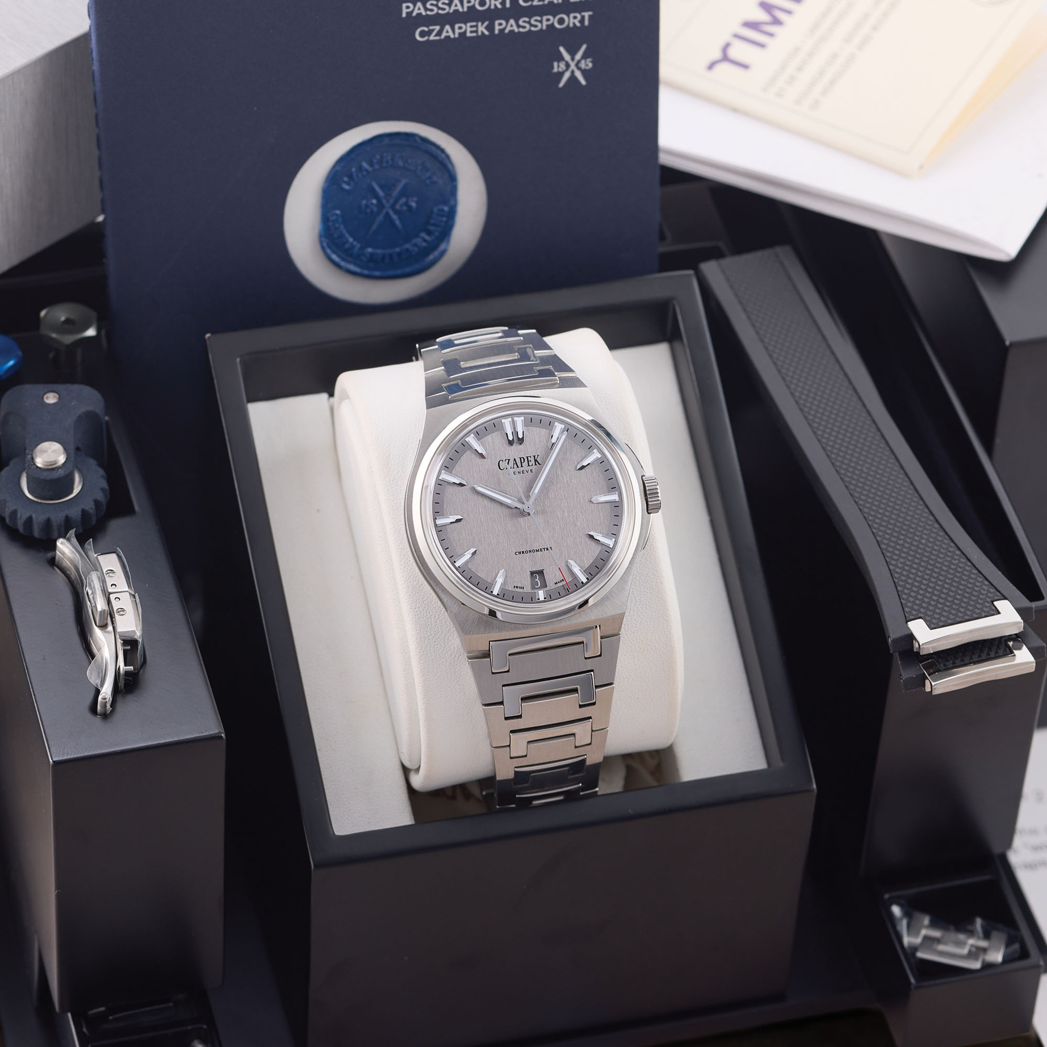 Accessories Czapek & Cie fitted box, certificate dated 2021, instructions booklet, tools, push pin, extra rubber strap and steel clasp