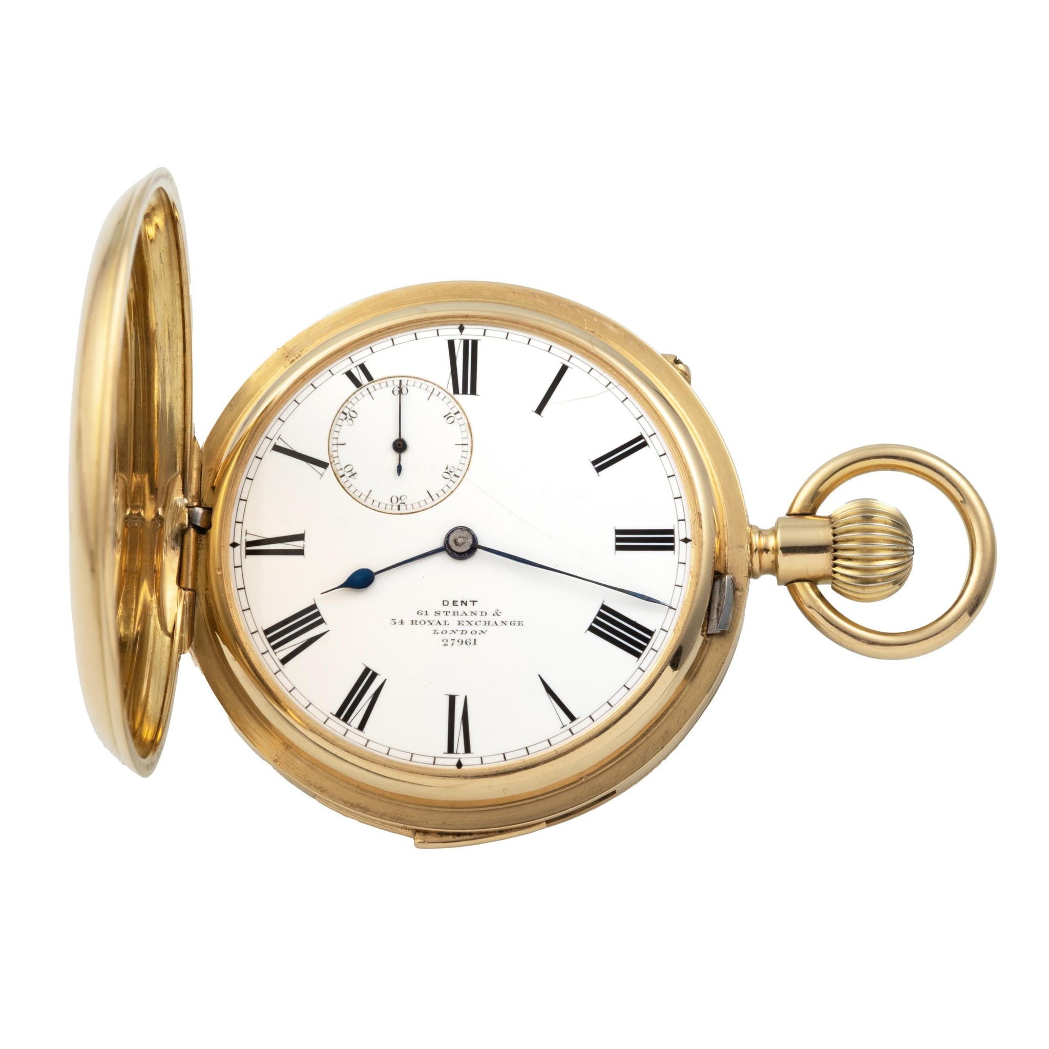 DENT LONDON, ENGLAND, HUNTING CASE MINUTE REPEATING, DUPLEX ESCAPEMENT, 18K YELLOW GOLD