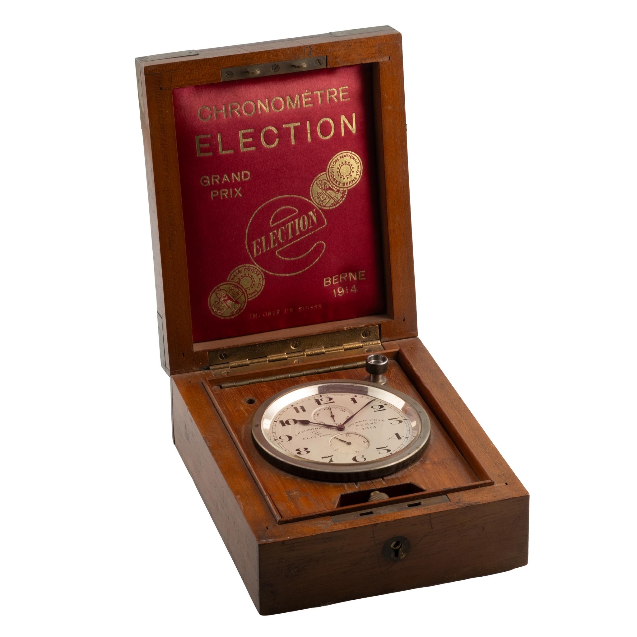 ELECTION, SWITZERLAND, CHRONOMETRE, POWER RESERVE, GILT BRASS AND WOOD