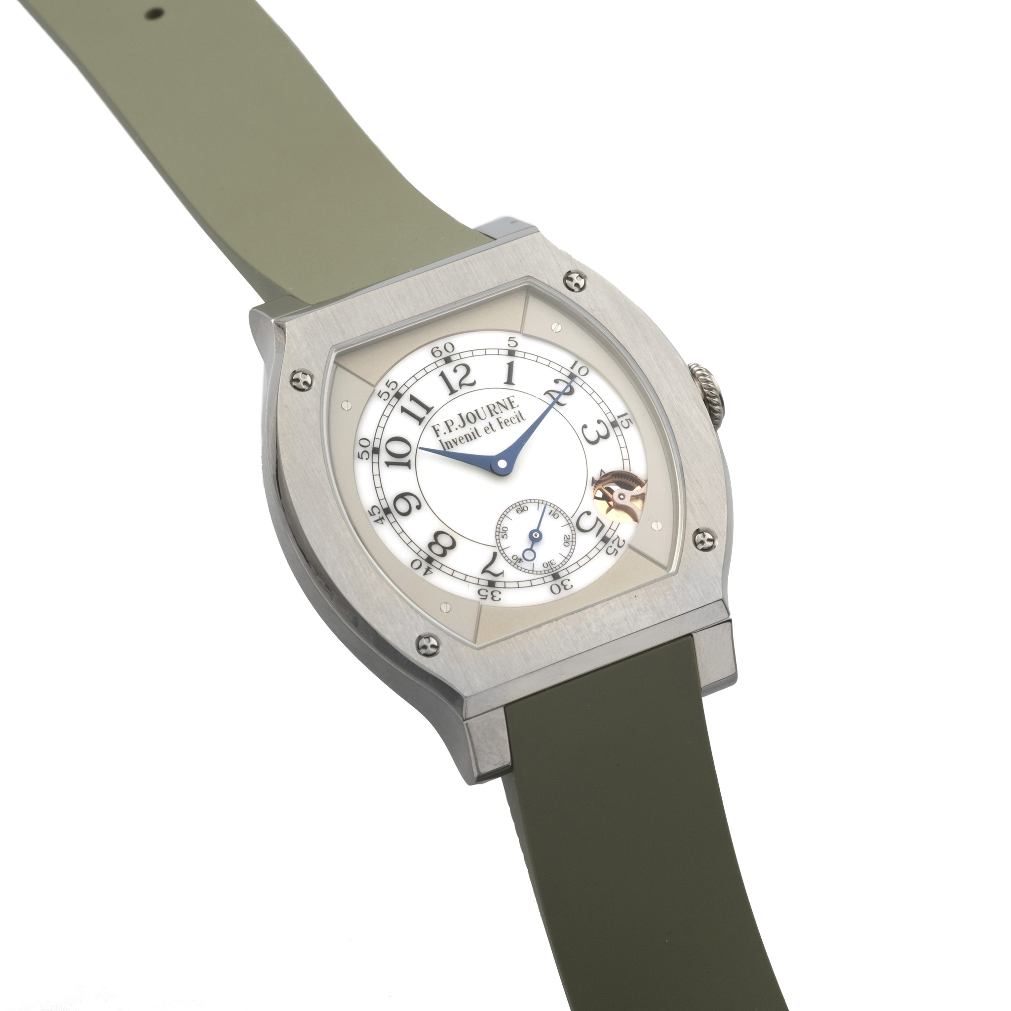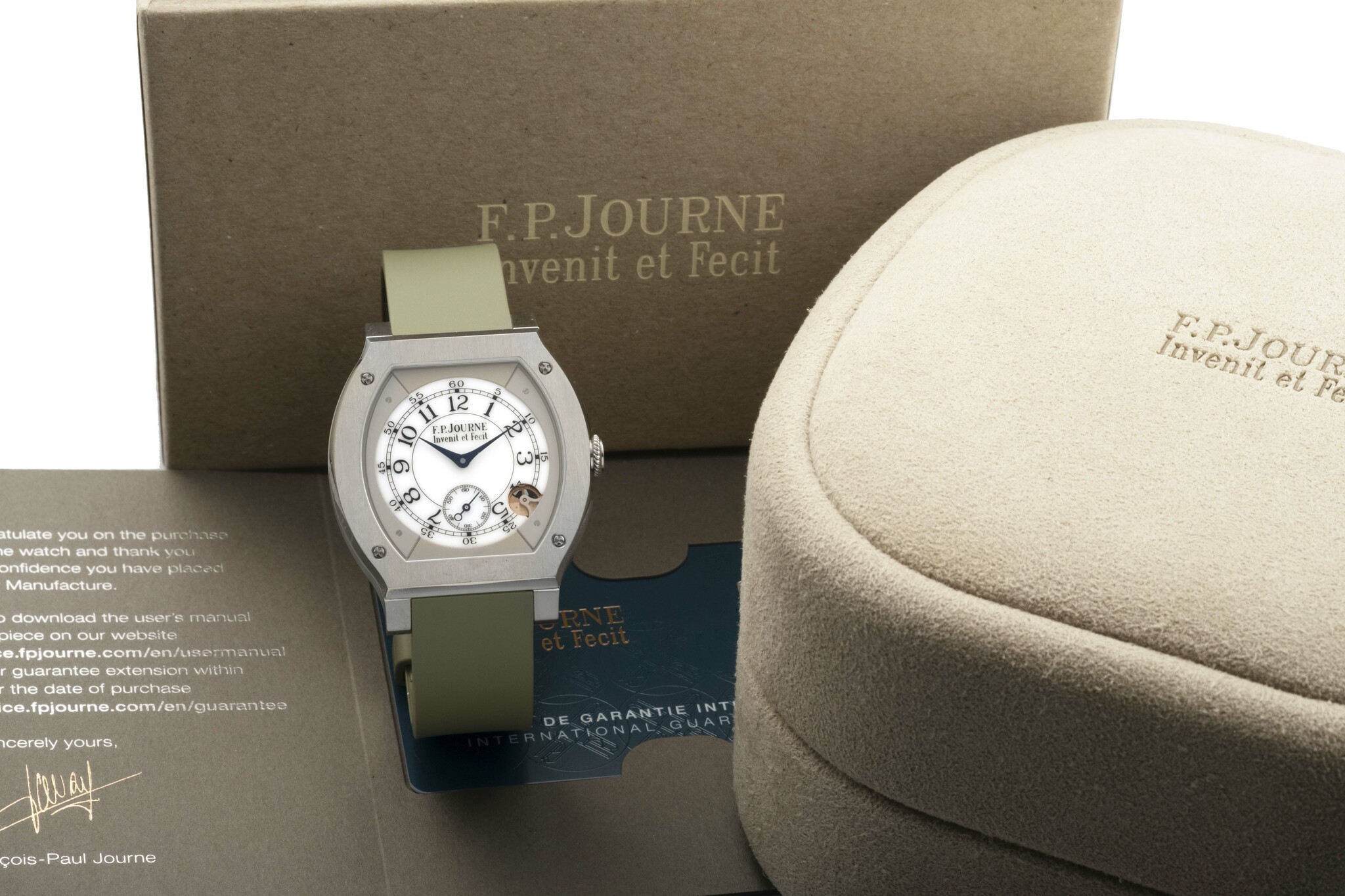 Accompanied by its original box and certificate, this example of the Élégante Titanium stands as a compelling demonstration of FP Journe’s innovative spirit. It unites advanced engineering, contemporary design and an unmistakable identity, offering a rare fusion of elegance, utility and modern horological artistry.