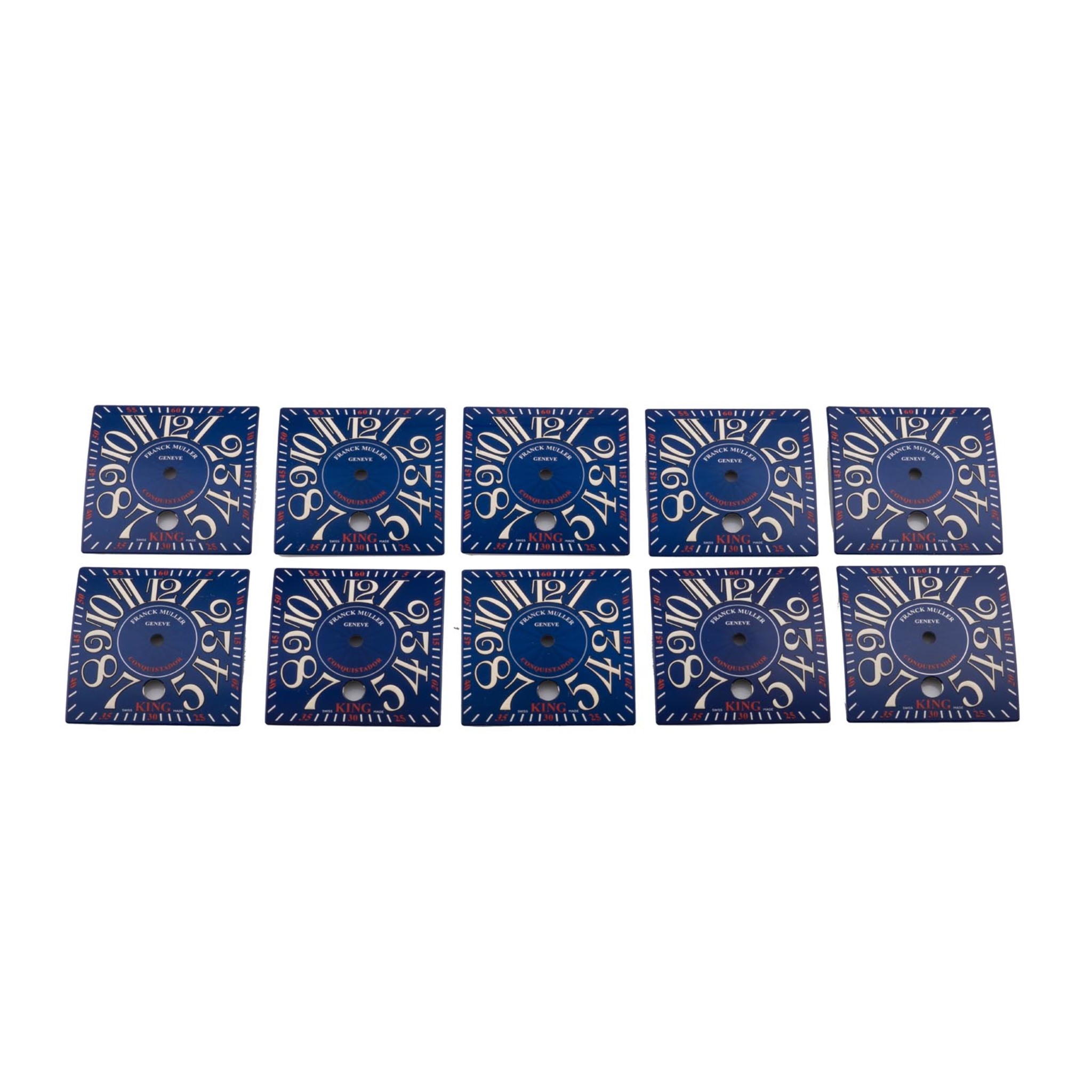 Ten dials, metal, square-shaped, for gentleman’s wristwatches.