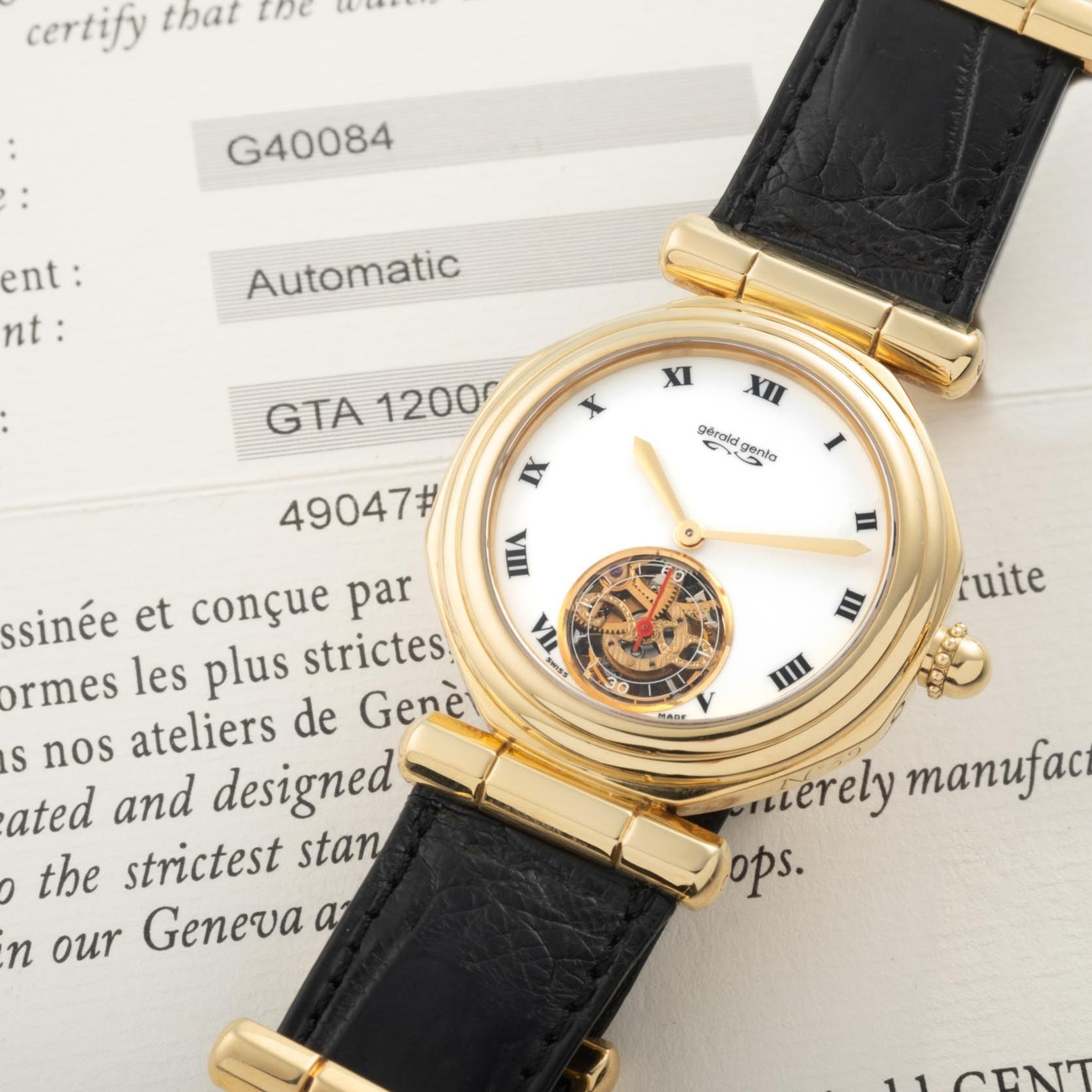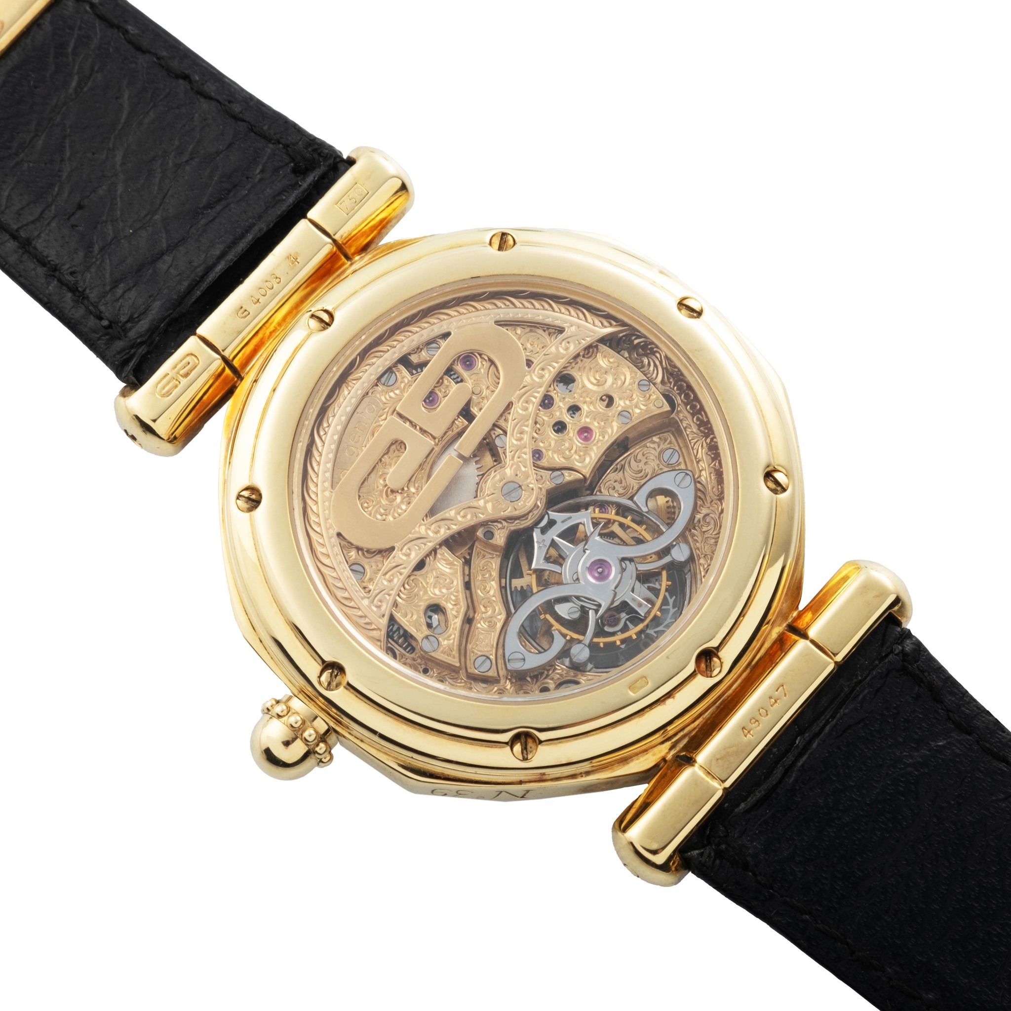 Bracelet leather with an 18k yellow gold Gerald Genta double deployant clasp