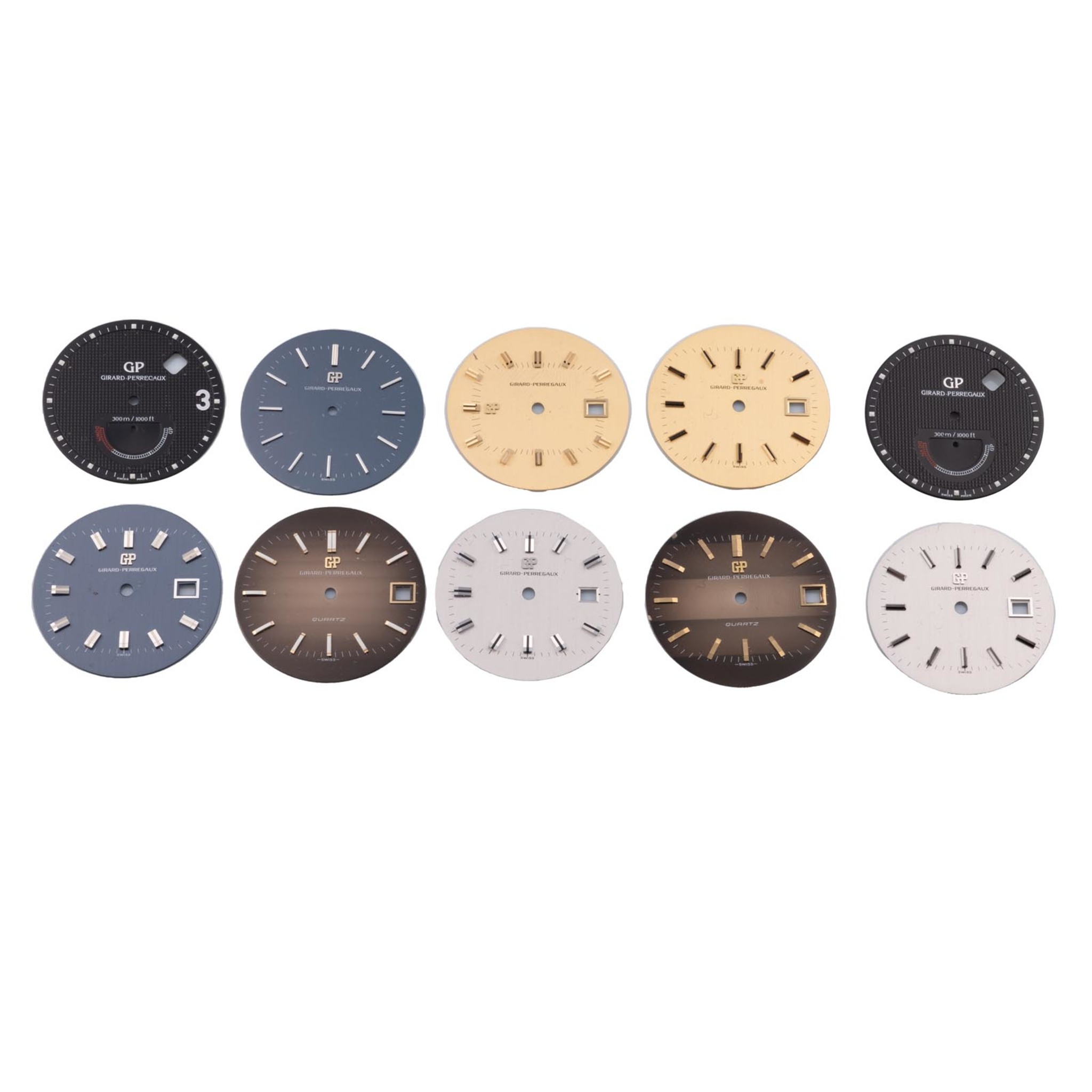 Ten dials, metal, round-shaped, for gentleman’s wristwatches.