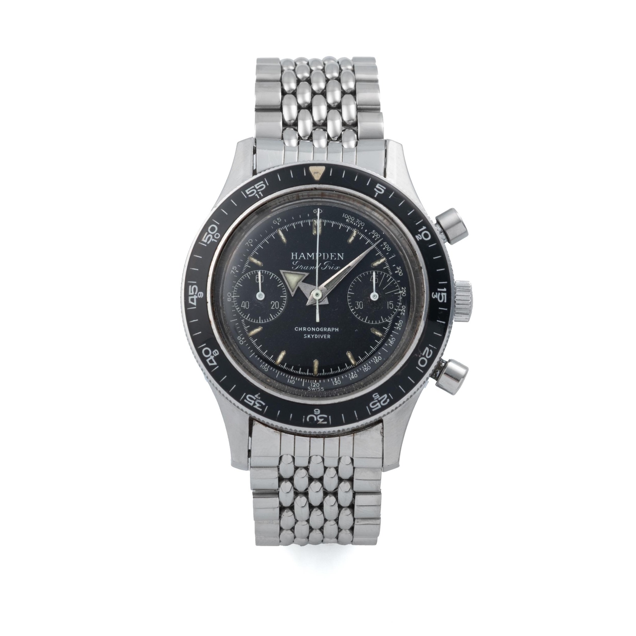 HAMPDEN WATCH CO., SWITZERLAND, GRAND PRIX CHRONOGRAPH SKYDIVER, STAINLESS STEEL