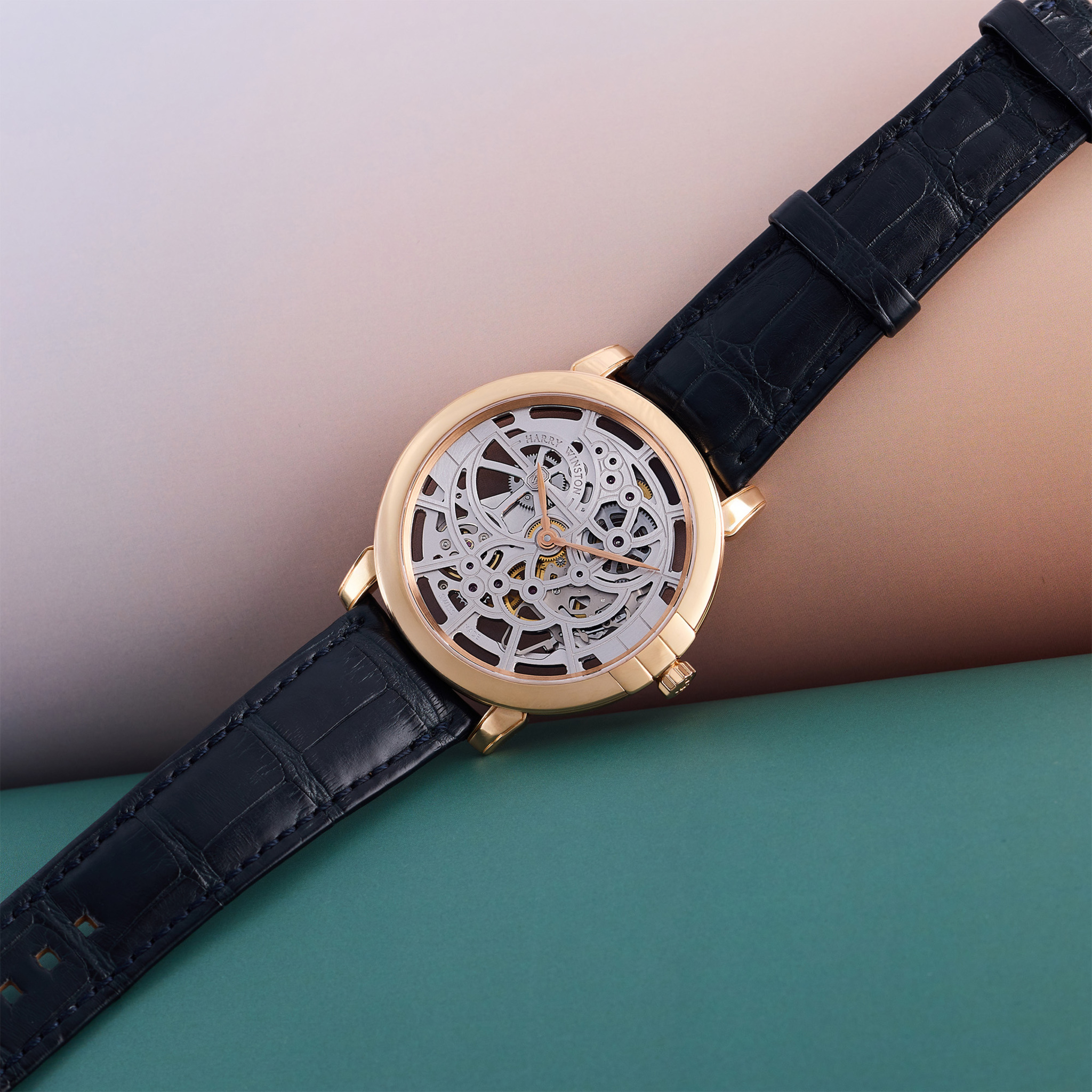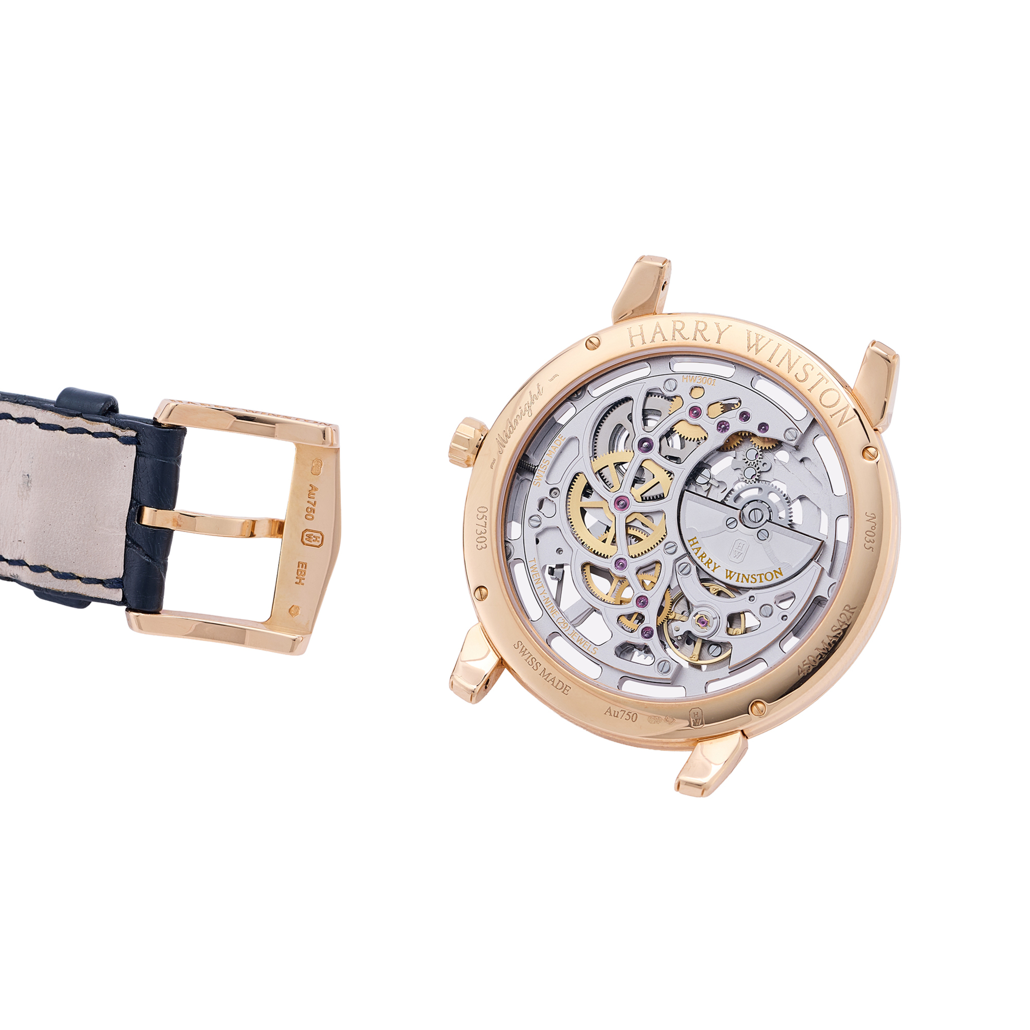 Bracelet leather strap with Harry Winston 18K pink gold pin buckle