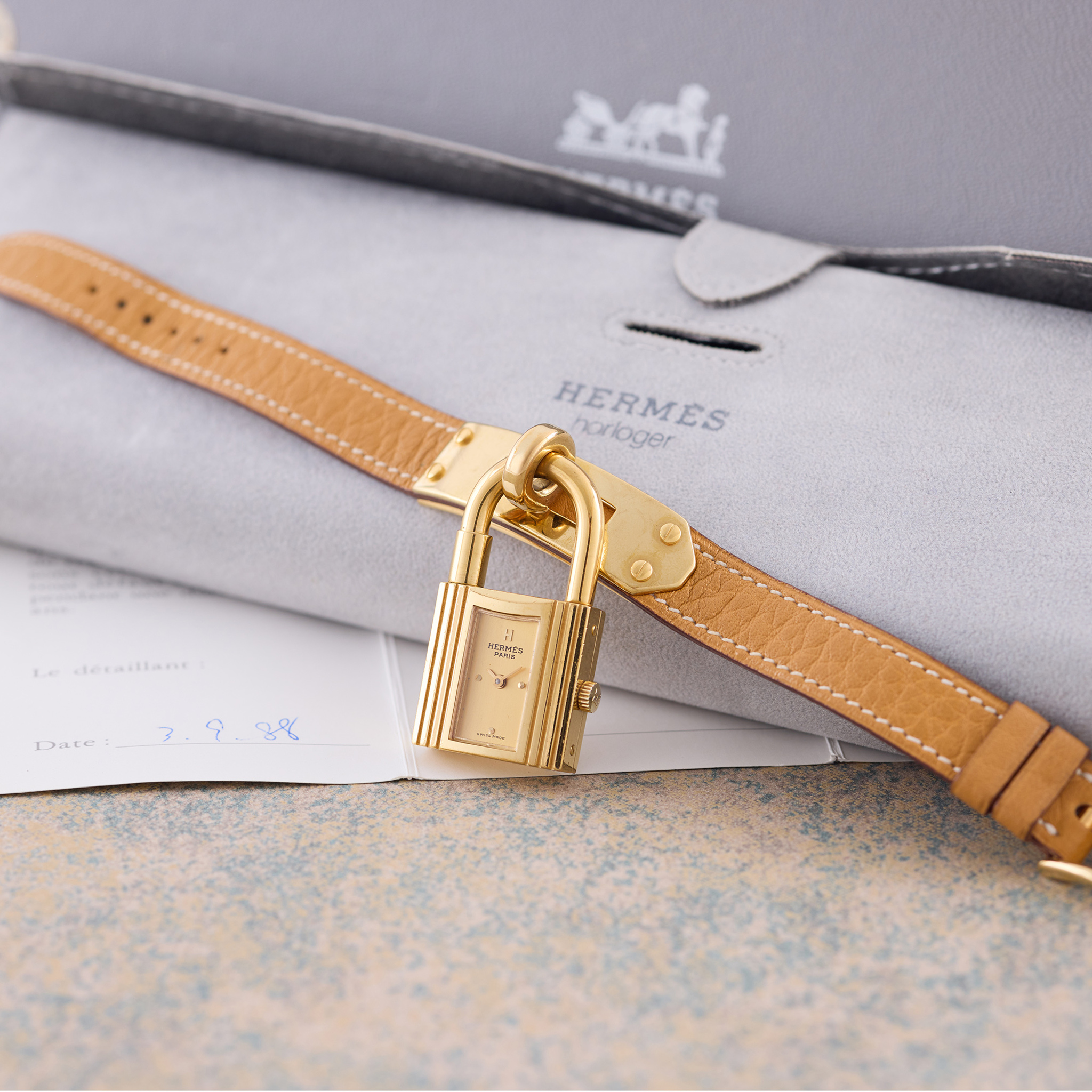 Accessories Hermes fitted Box, pouch, guarantee dated Sep 1988