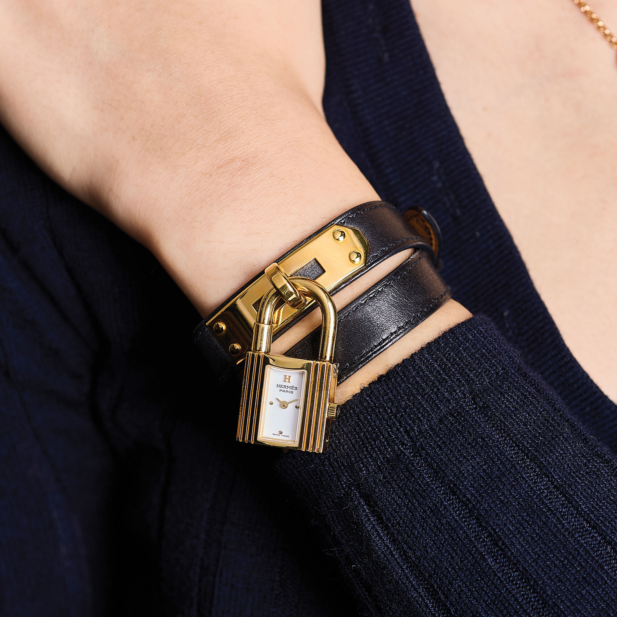 Bracelet Hermès leather strap with Hermès gold plated buckle