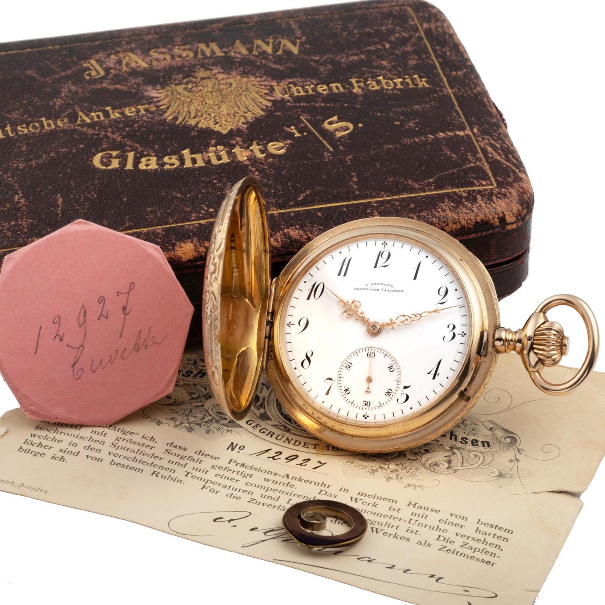 J. ASSMANN, GERMANY, DECORATIVE POCKET WATCH, NIELLO-WORK DÉCOR, 14K PINK GOLD