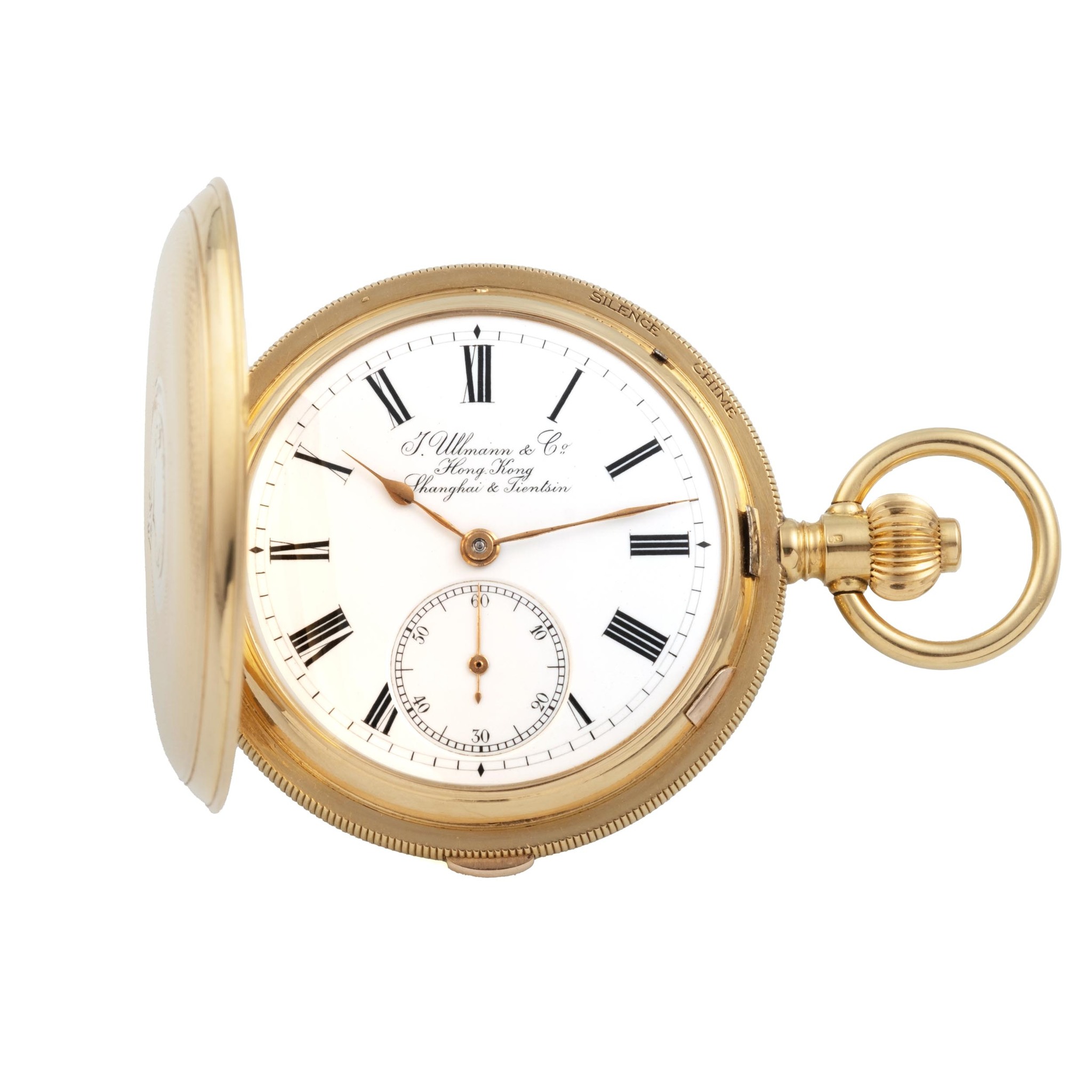 J. ULLMANN & CO, SWITZERLAND, POCKET CLOCK-WATCH, GRANDE SONNERIE, CARILLON TRIP MINUTE-REPEATER, THREE GONGS, THREE HAMMERS, 18K YELLOW GOLD