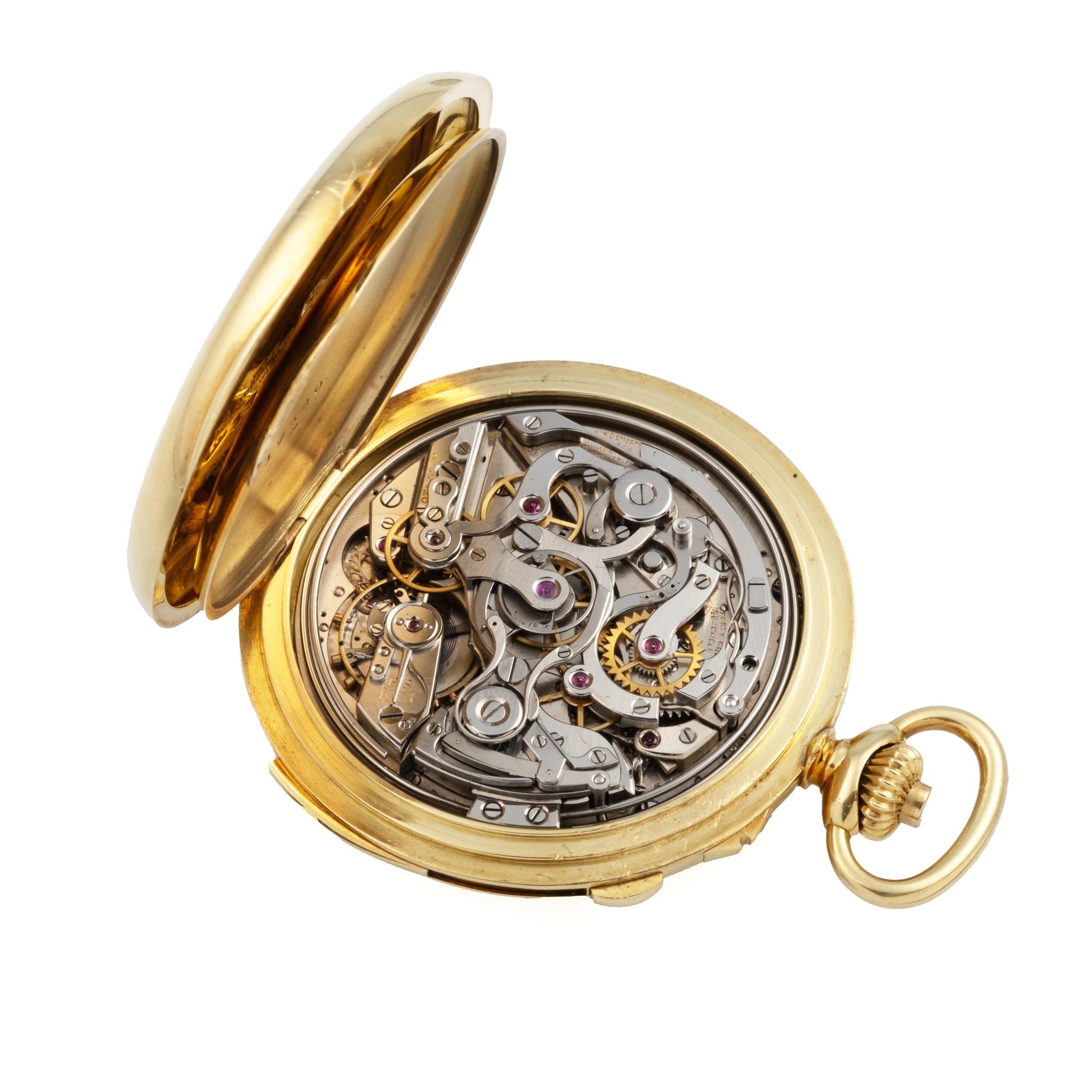Caliber 18”’, rhodium-plated, fausses cotes decoration, 41 jewels, straight-line lever escapement, adjusted cut bimetallic compensation balance, blued steel Breguet balance spring, swan-neck micrometer regulator