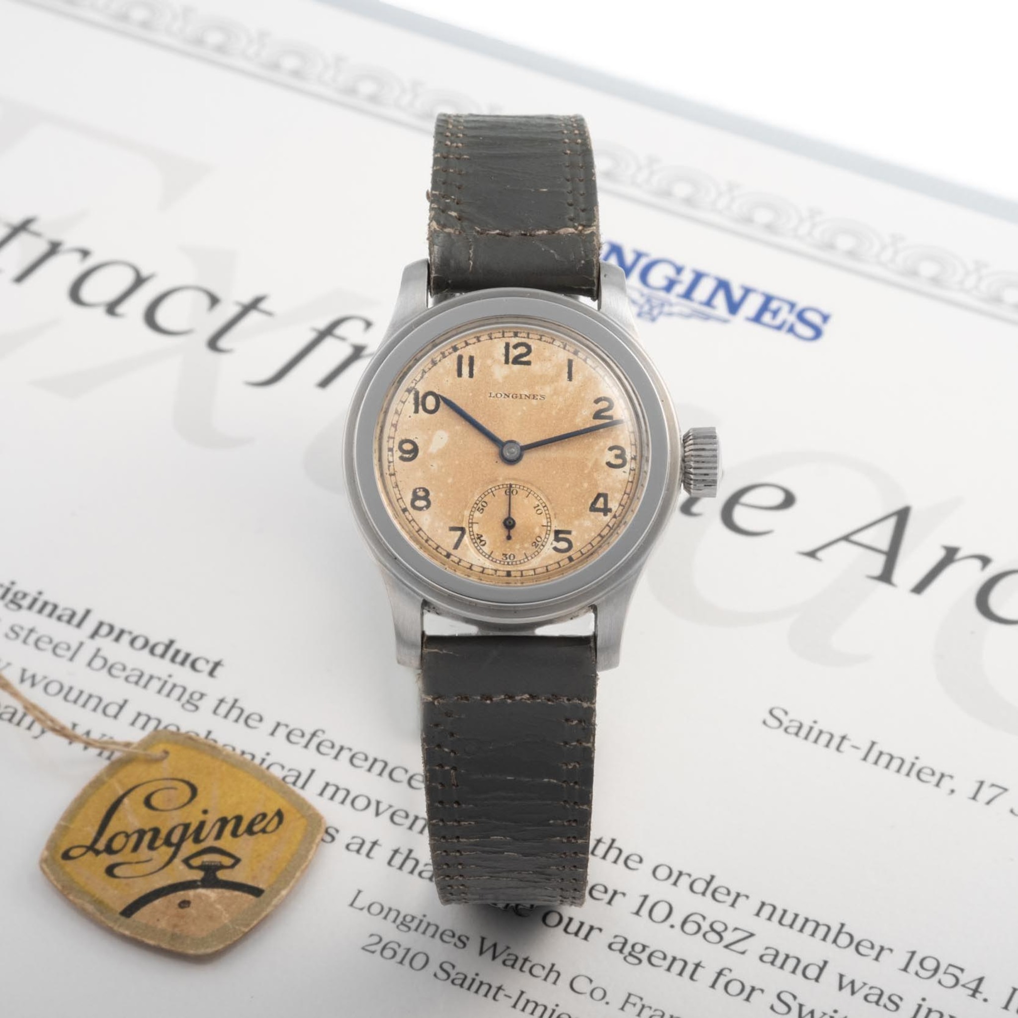 LONGINES, SWITZERLAND, REF. 3777, SO CALLED "TRE TACCHE", NEW OLD STOCK, STAINLESS STEEL