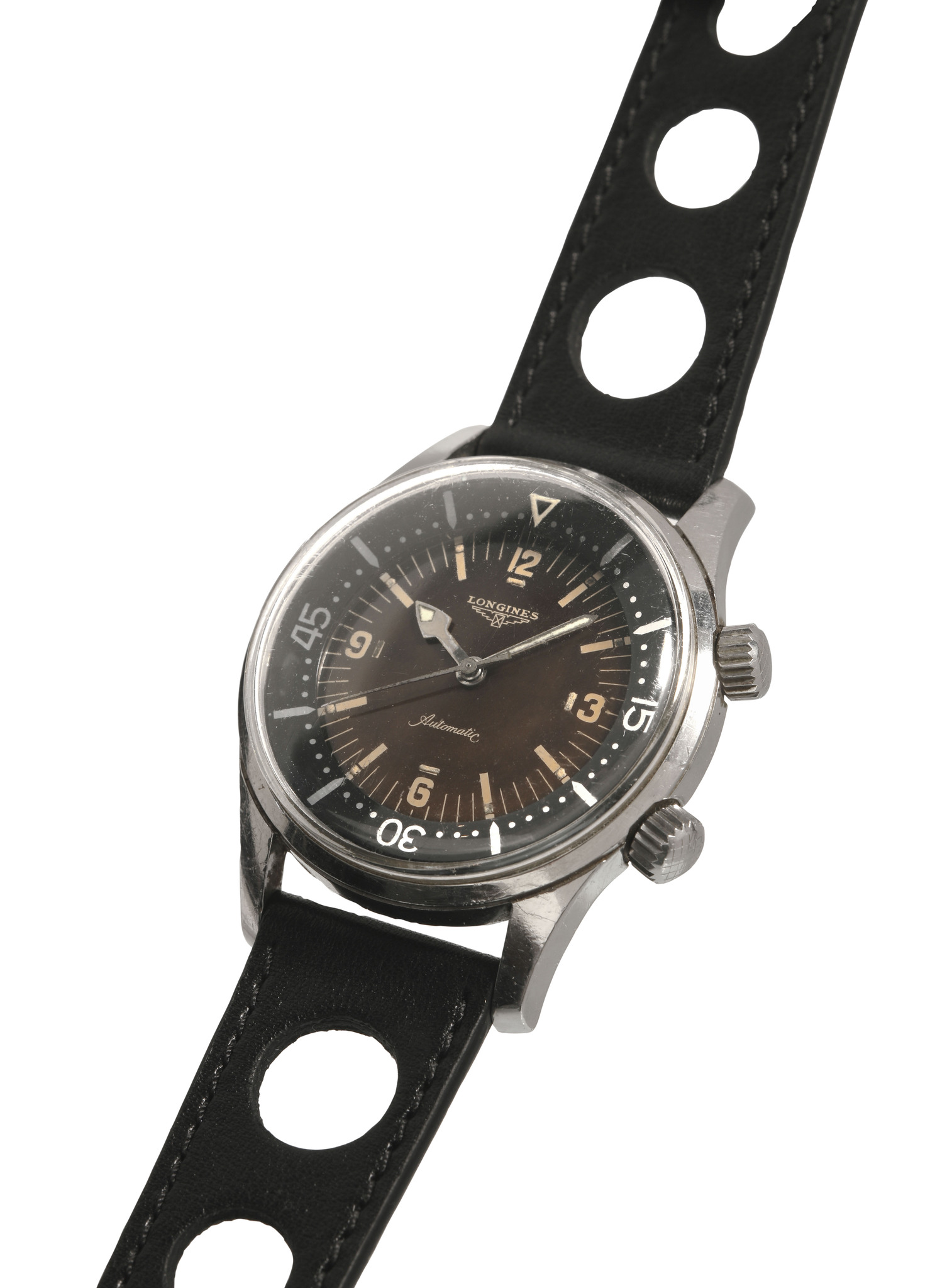 An iconic and highly sought-after early Longines professional diver distinguished by its uncompromised originality, charismatic vintage presence, and notably desirable tropical dial surface.