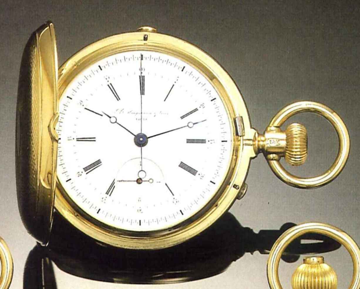 A. Huguenin & Sons, Locle, Swiss, No. 15288, circa 1880. Fine 18 ct. gold hunting cased keyless independent seconds watch with 1/4 second " foudroyante".