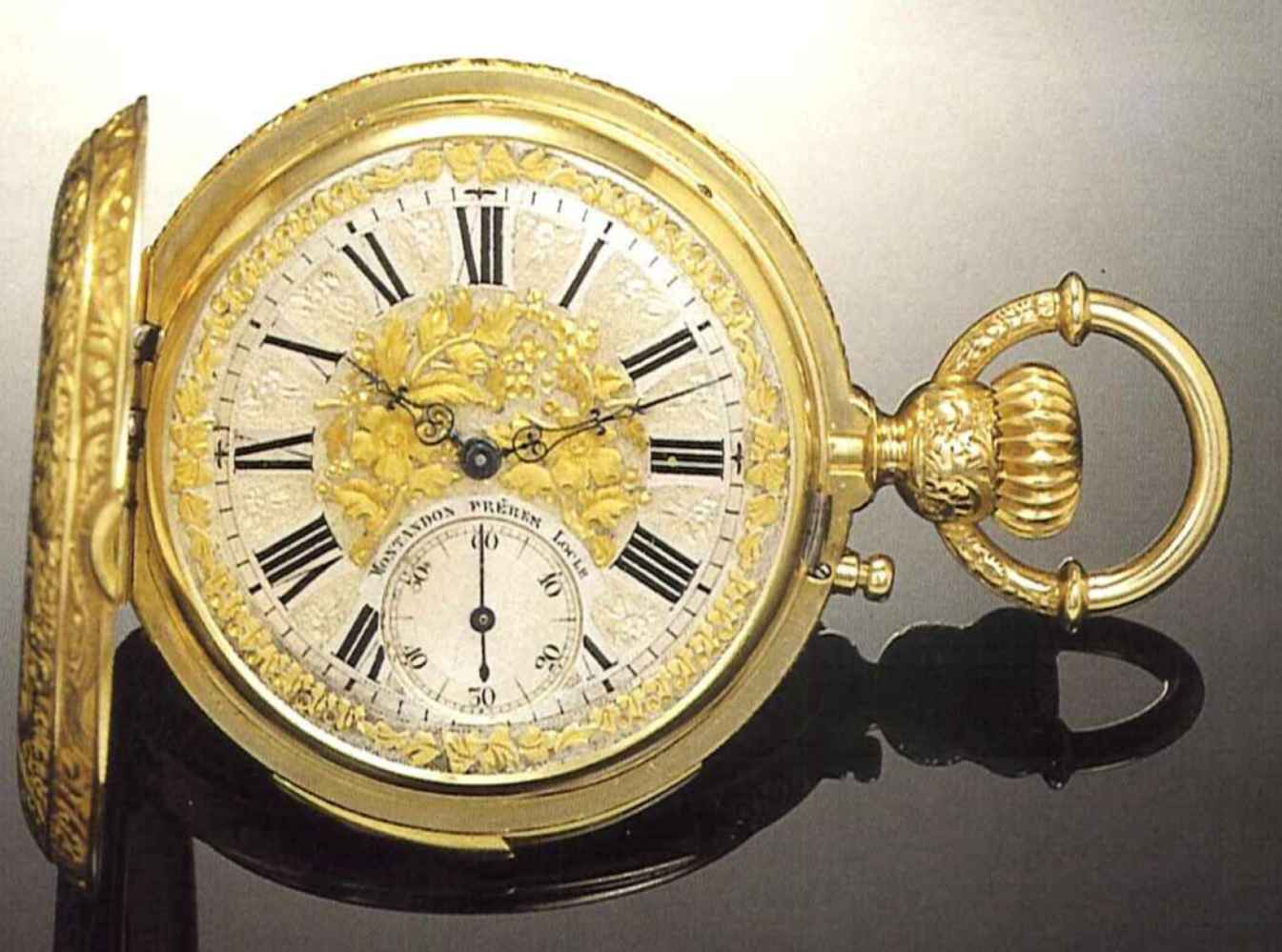 Montandon, Frères, No. 20573, Locle, Switzerland, made for the Spanish or South American market, circa 1880. Fine 18 ct. gold, hunting cased, keyless minute repeating watch.