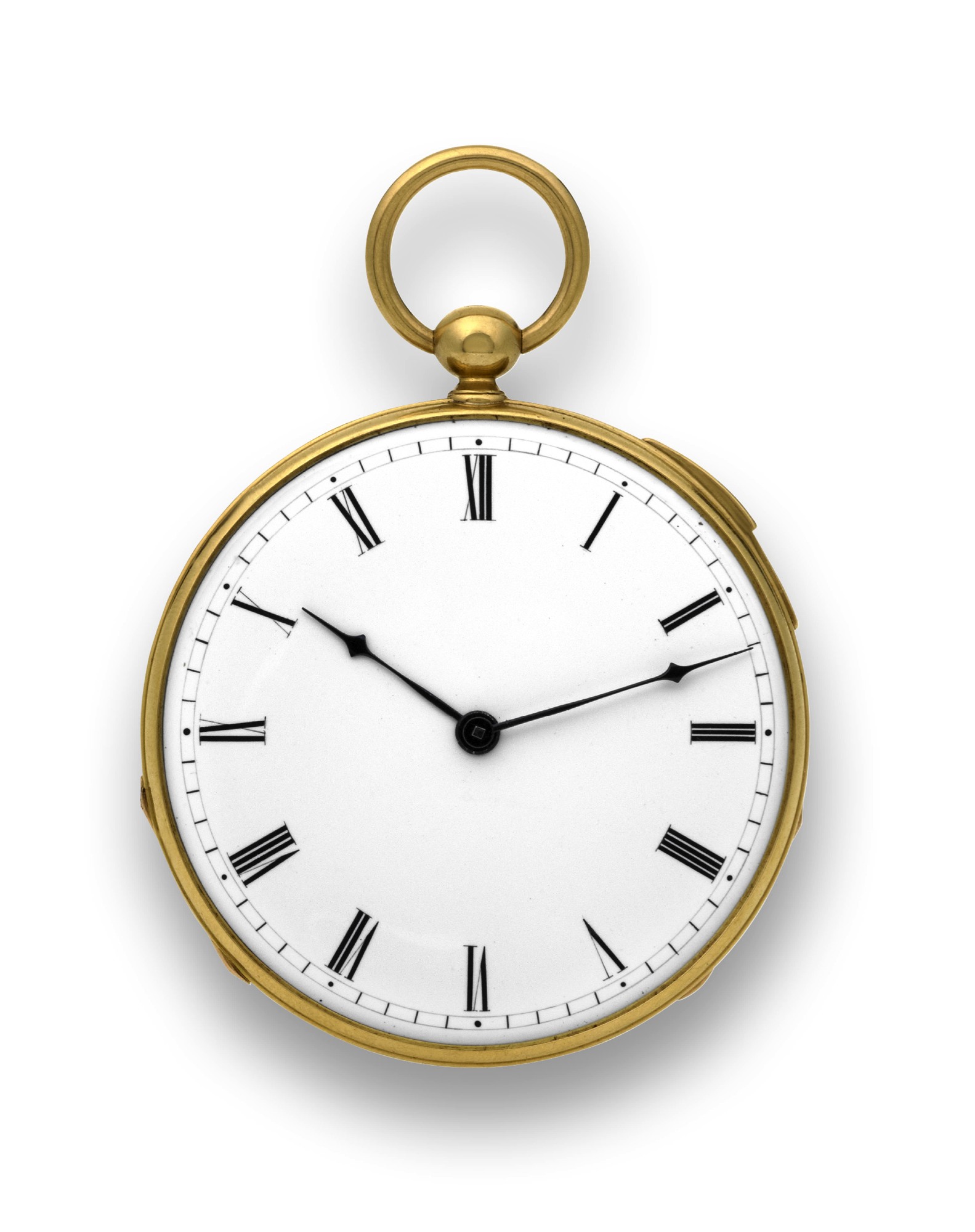QUARTER-REPEATING WATCH ?ECHAPPEMENT LIBRE? Swiss, No. 2786. Made circa 1850. Fine, quarter-repeating, 18K gold pocket watch with lever escapement. Accompanied by a gold-tooled morocco box and gold key.