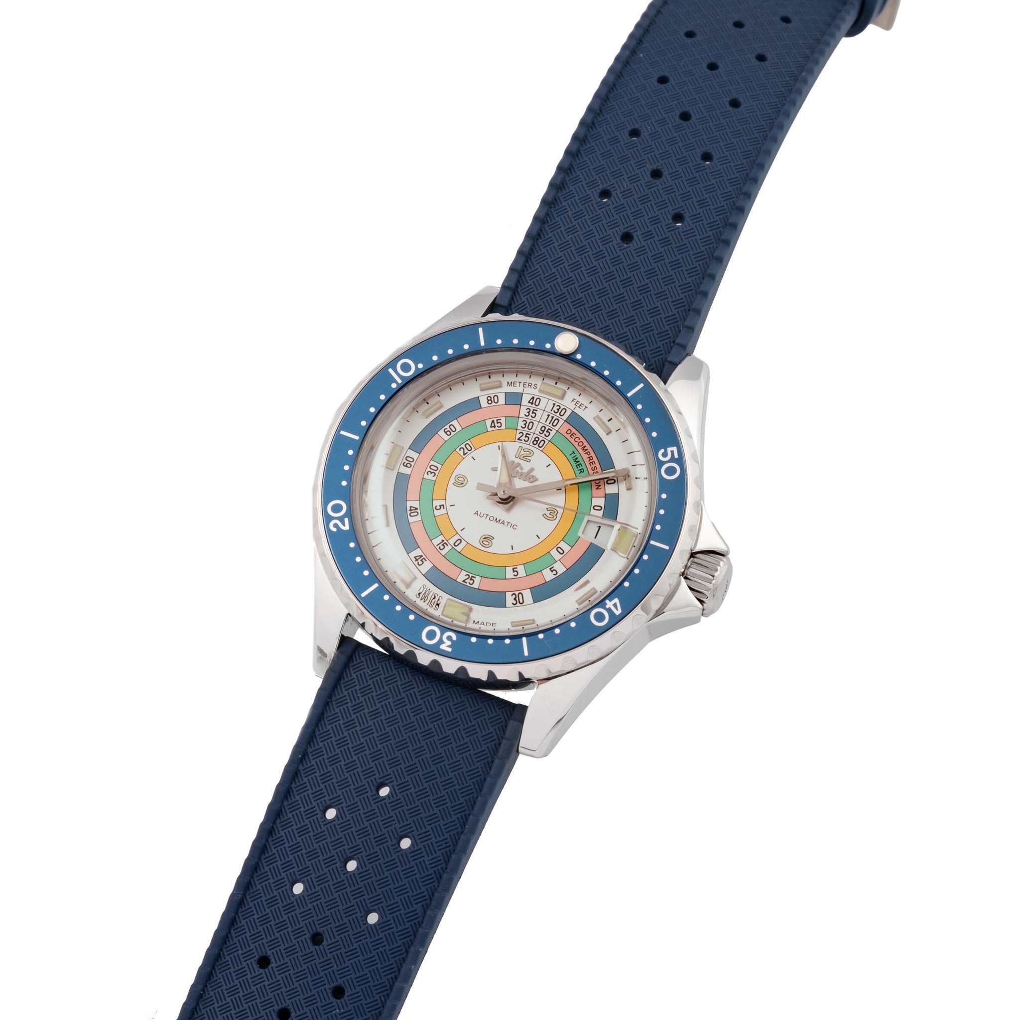 Accessories Original box and certificate, plus 1 Milanese steel bracelet and two additional straps: a traditional brown leather strap and a turquoise blue fabric strap with stitching to match the decompression table.