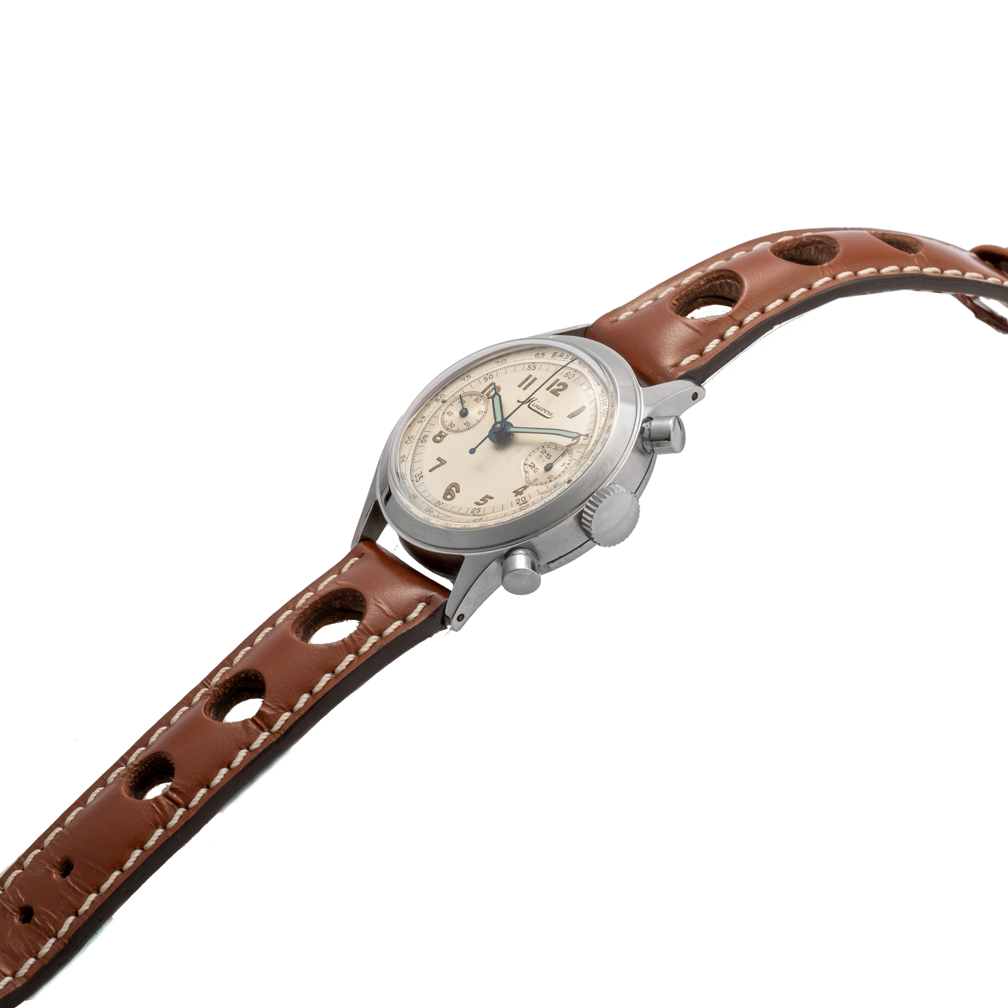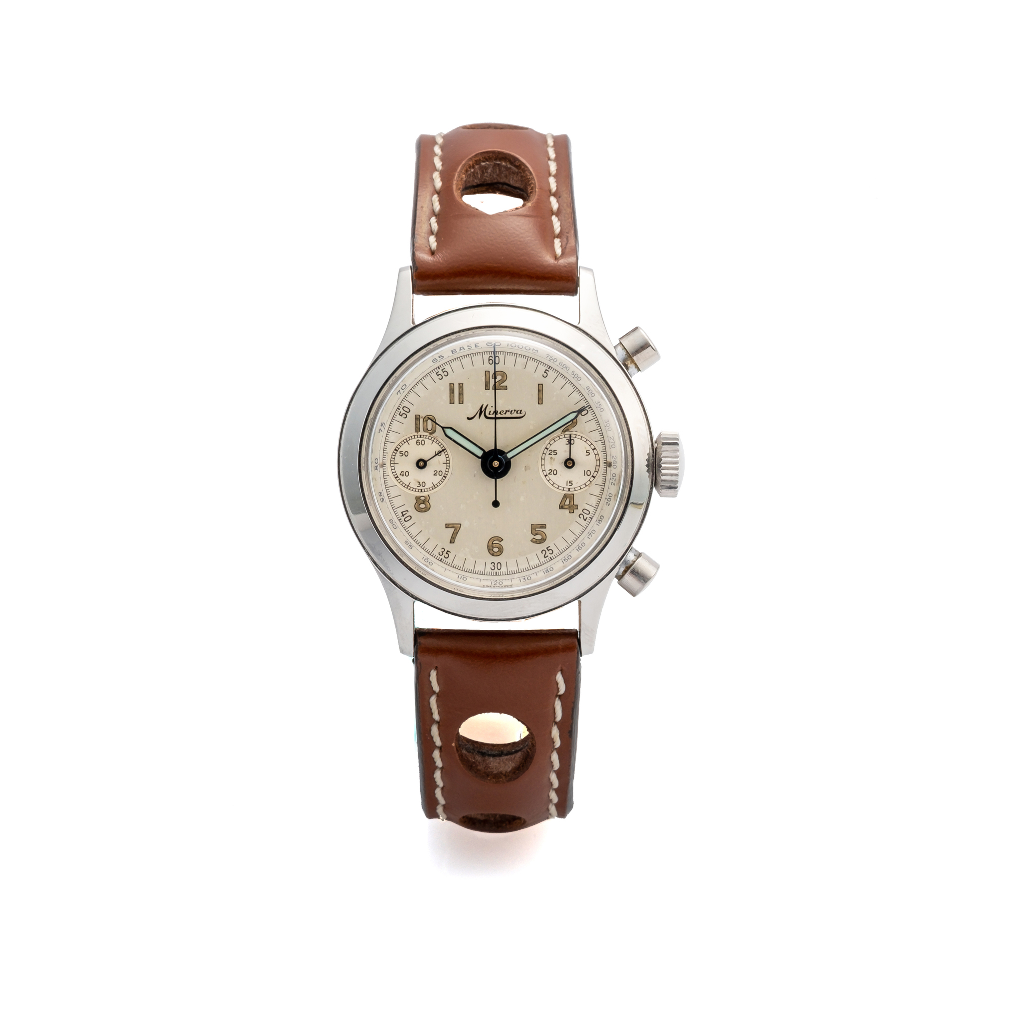 MINERVA, CHRONOGRAPH, TWO-TONE SILVER DIAL, STEEL