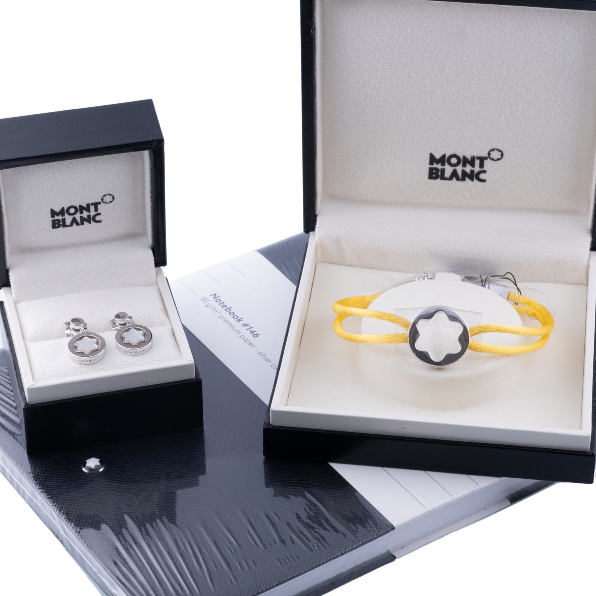 Material leather, paper, silk, Sterling silver (0.925) and mother-of-pearl