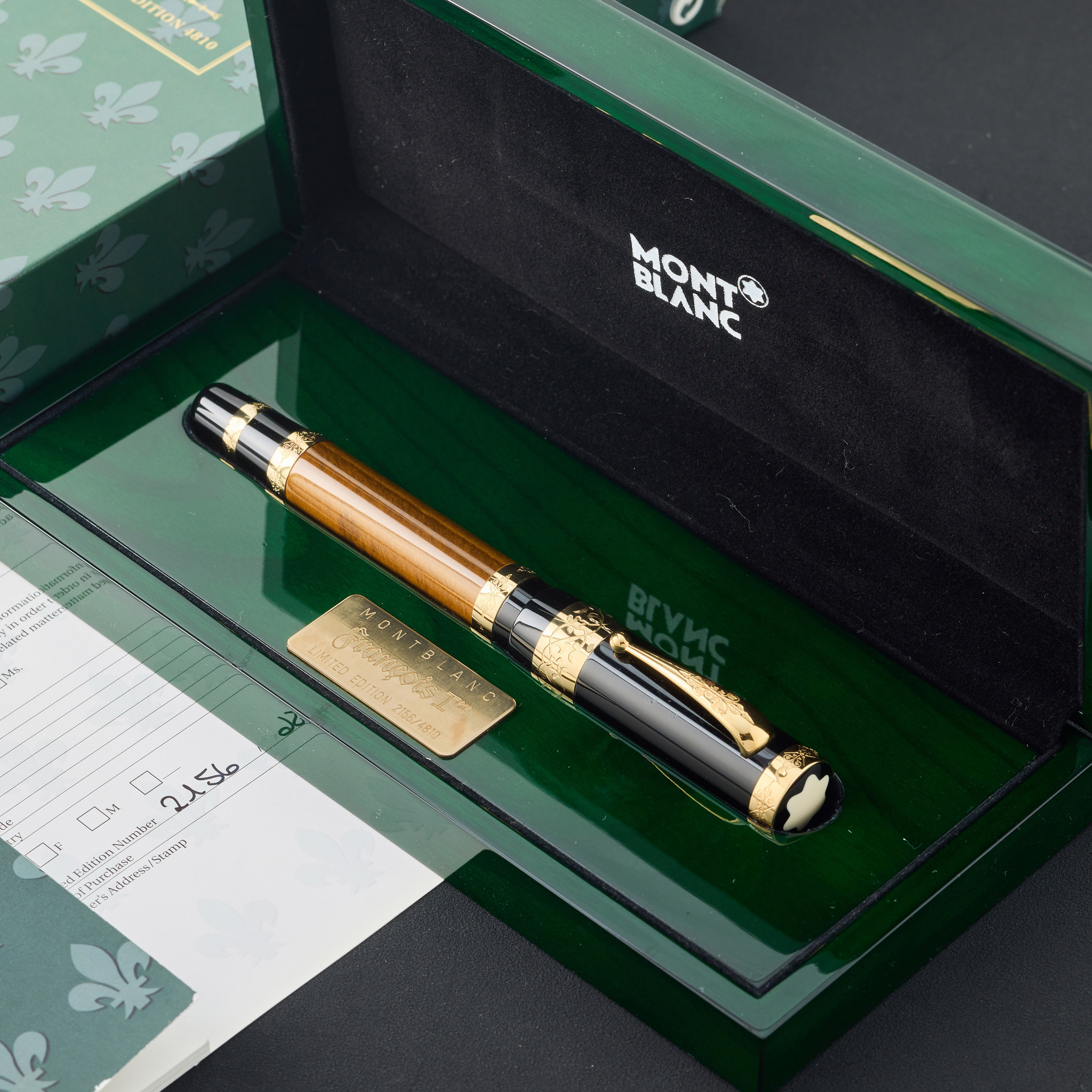 Accessories Original Montblanc fitted box and outer box, “François 1er” booklet and blank international reply card